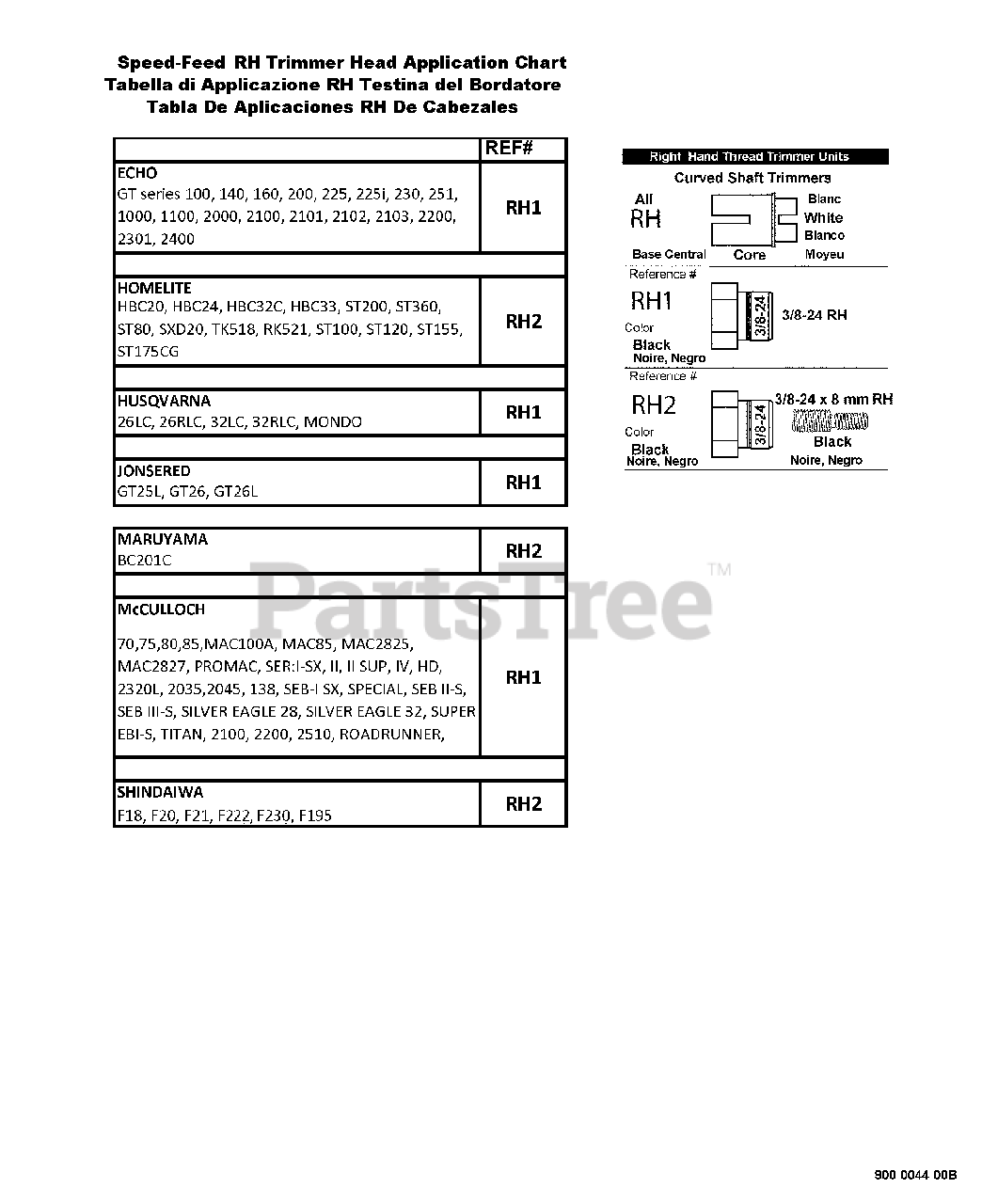 Application Guide -- Right Handed Rotation Parts Diagram