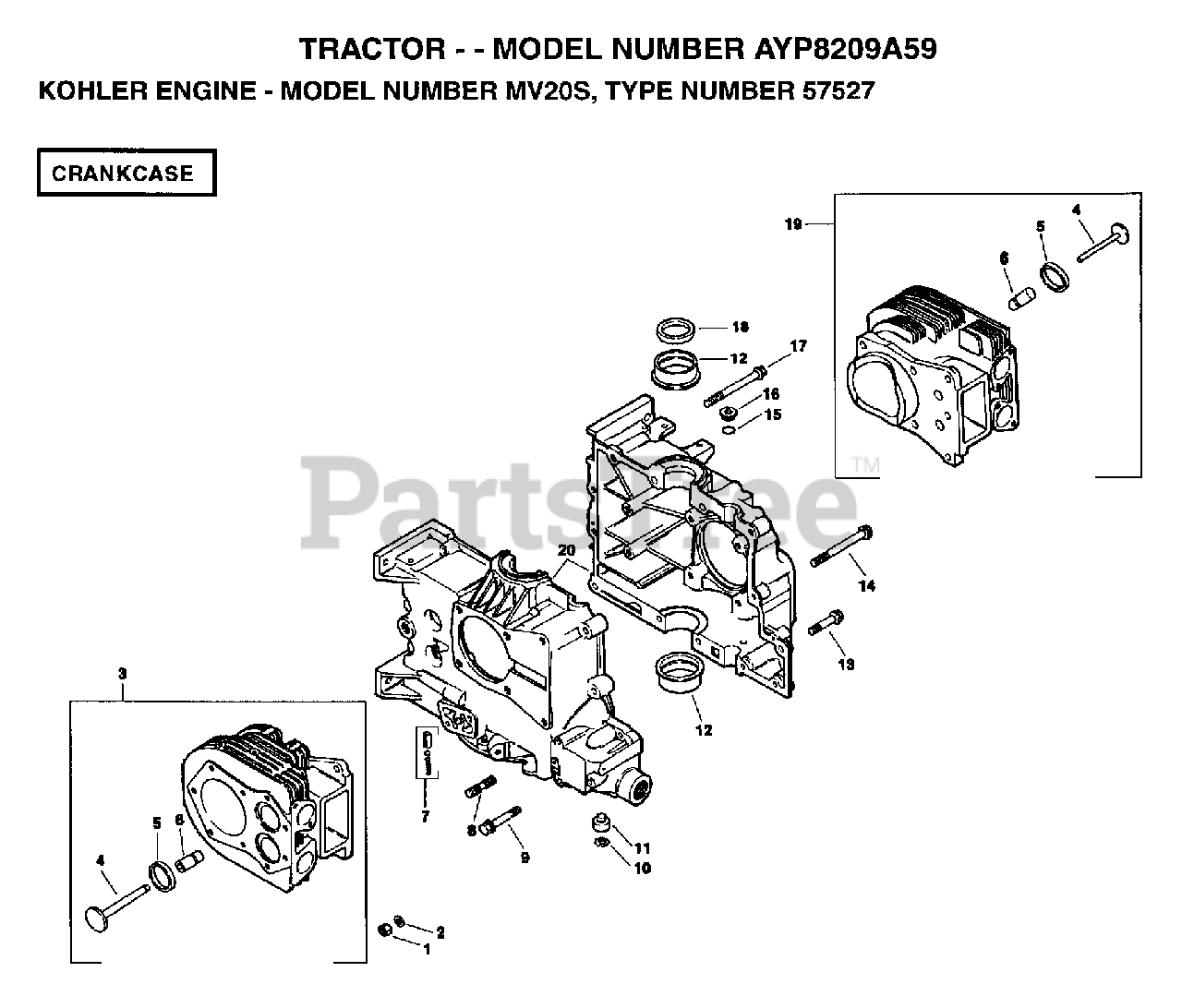 AYP 8209 A59 - Electrolux/AYP Lawn Tractor (1995) KOHLER ENGINE - CRANKCASE Parts Diagram