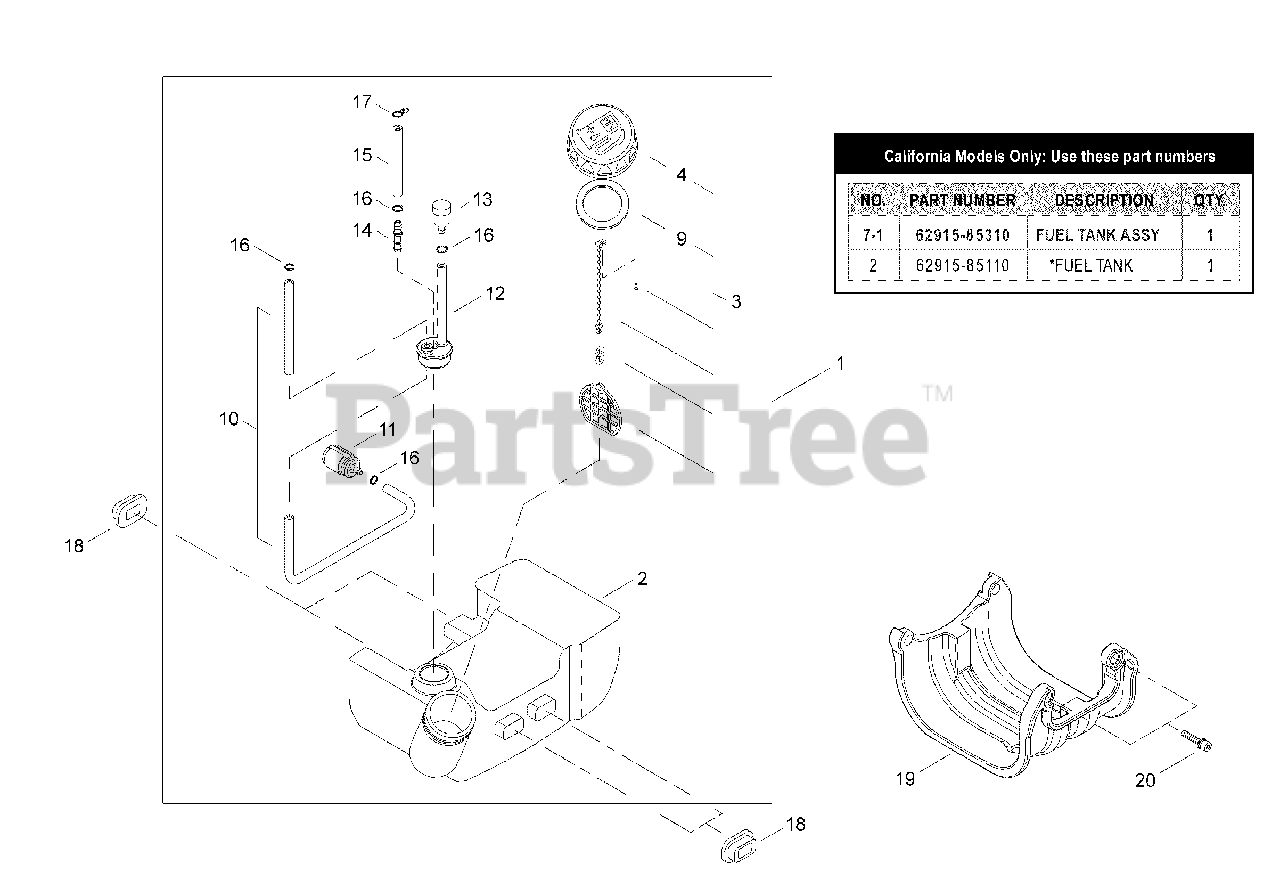 Note: (Part of an assembly) California Models Only: Use these part numbers