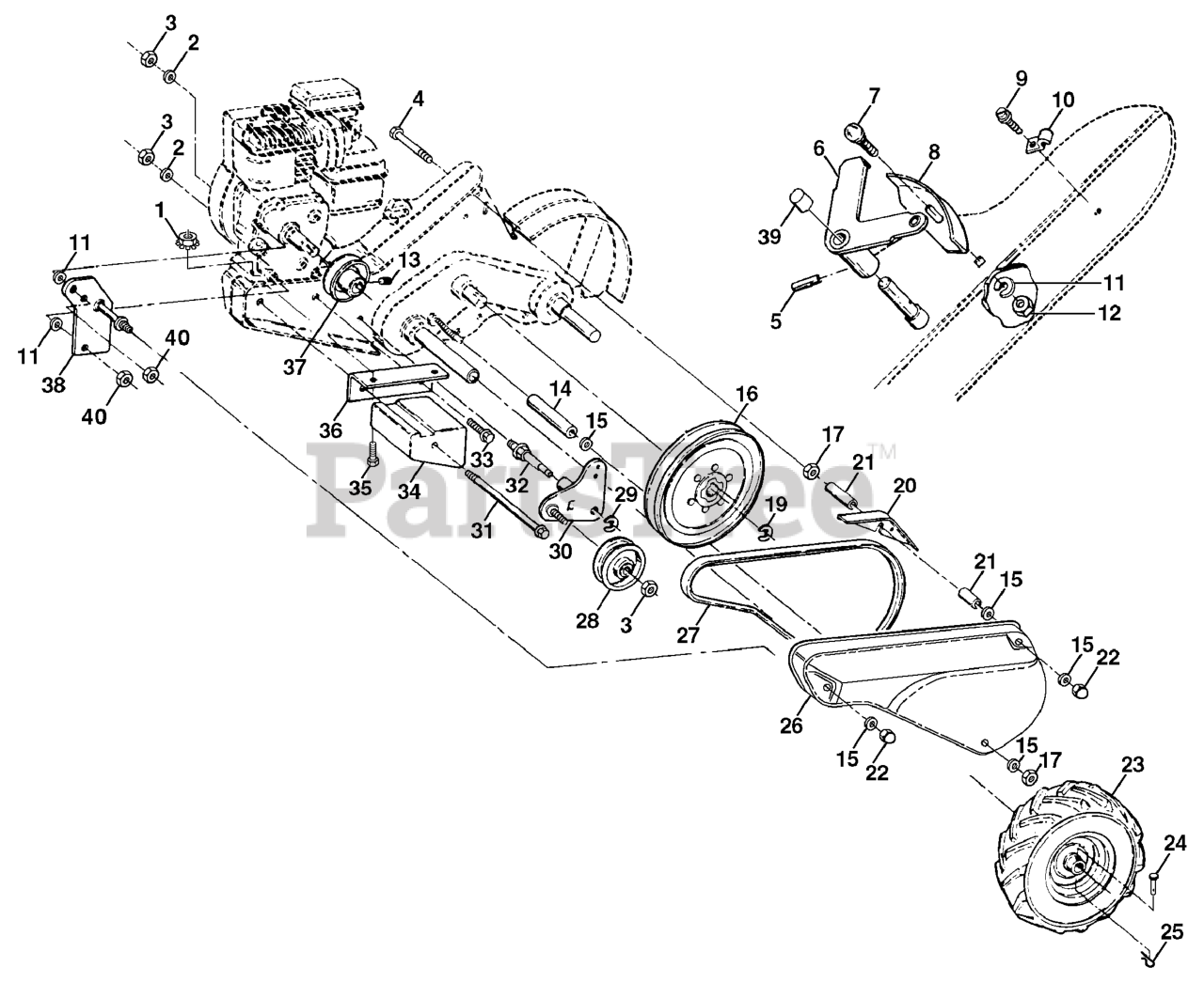 CRT 35 (954001252-B) - Husqvarna Rear-Tine Tiller (1995-03) Mainframe, Left Side Parts Diagram