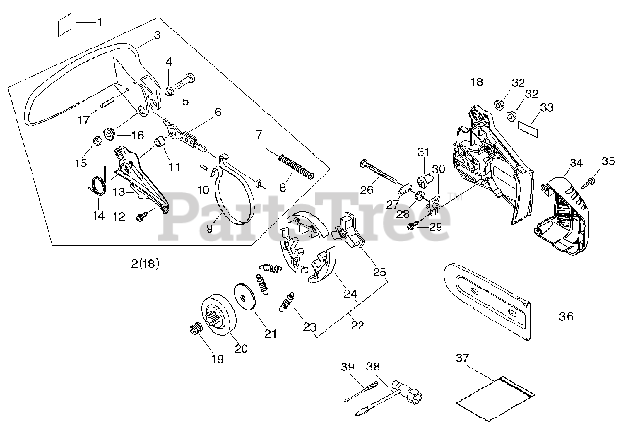CS-350 TES - Echo Chainsaw (SN: C24126001001 - C24126999999) Chain Brake, Clutch Cover Parts Diagram