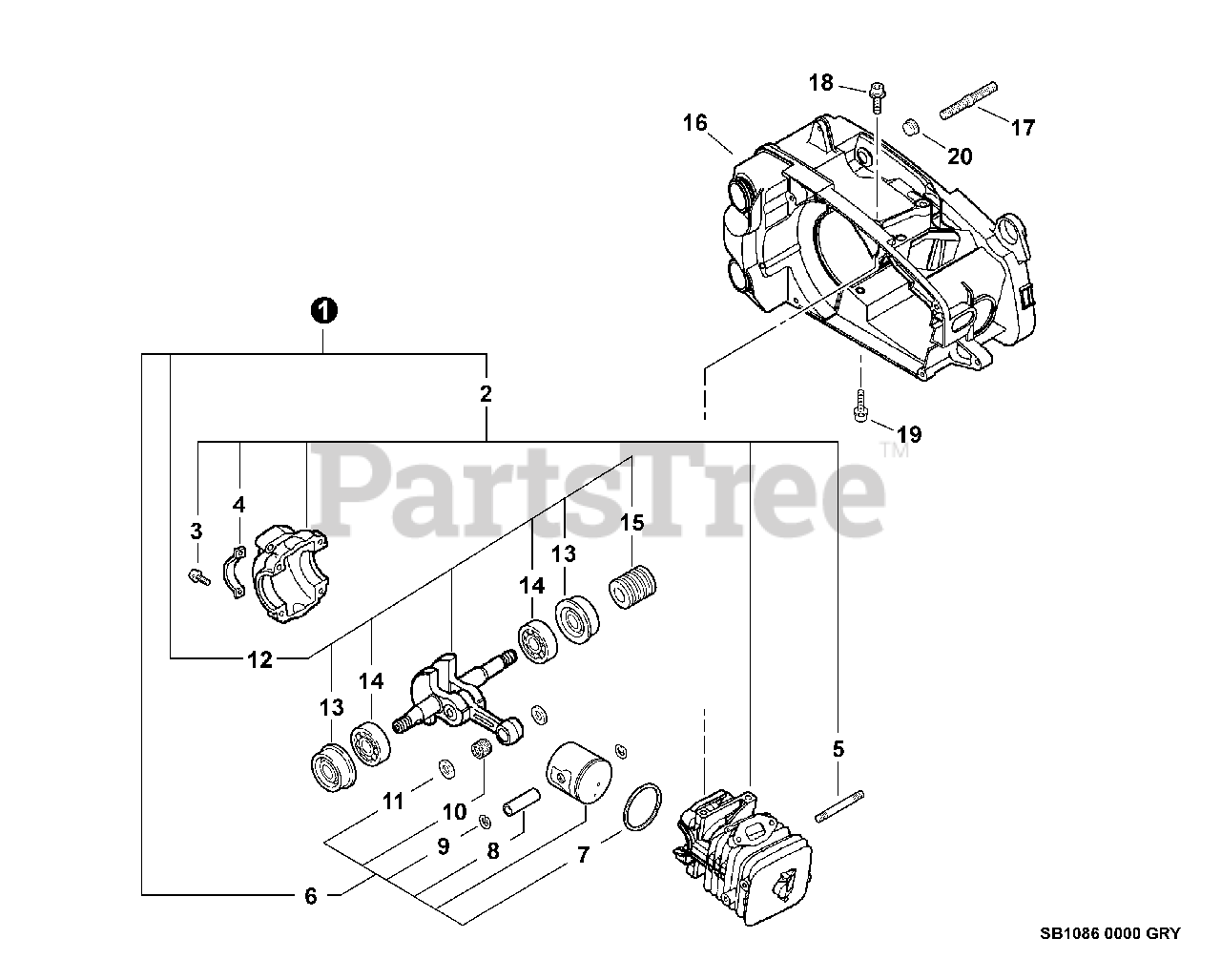 CS-360 T - Echo Chainsaw (SN: 10001001 - 10999999) Engine, Short Block -- SB1086 - GRAY MODELS Parts Diagram