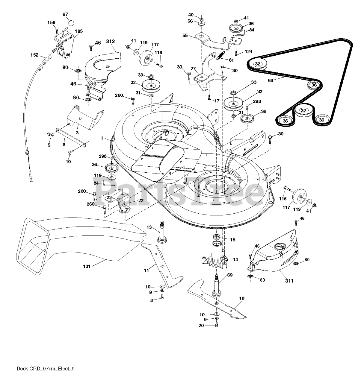 Note: Mandrel Assembly (Includes housing shaft assembly and bearing only- pulley /nut /washer and blade bolt /washers not included)