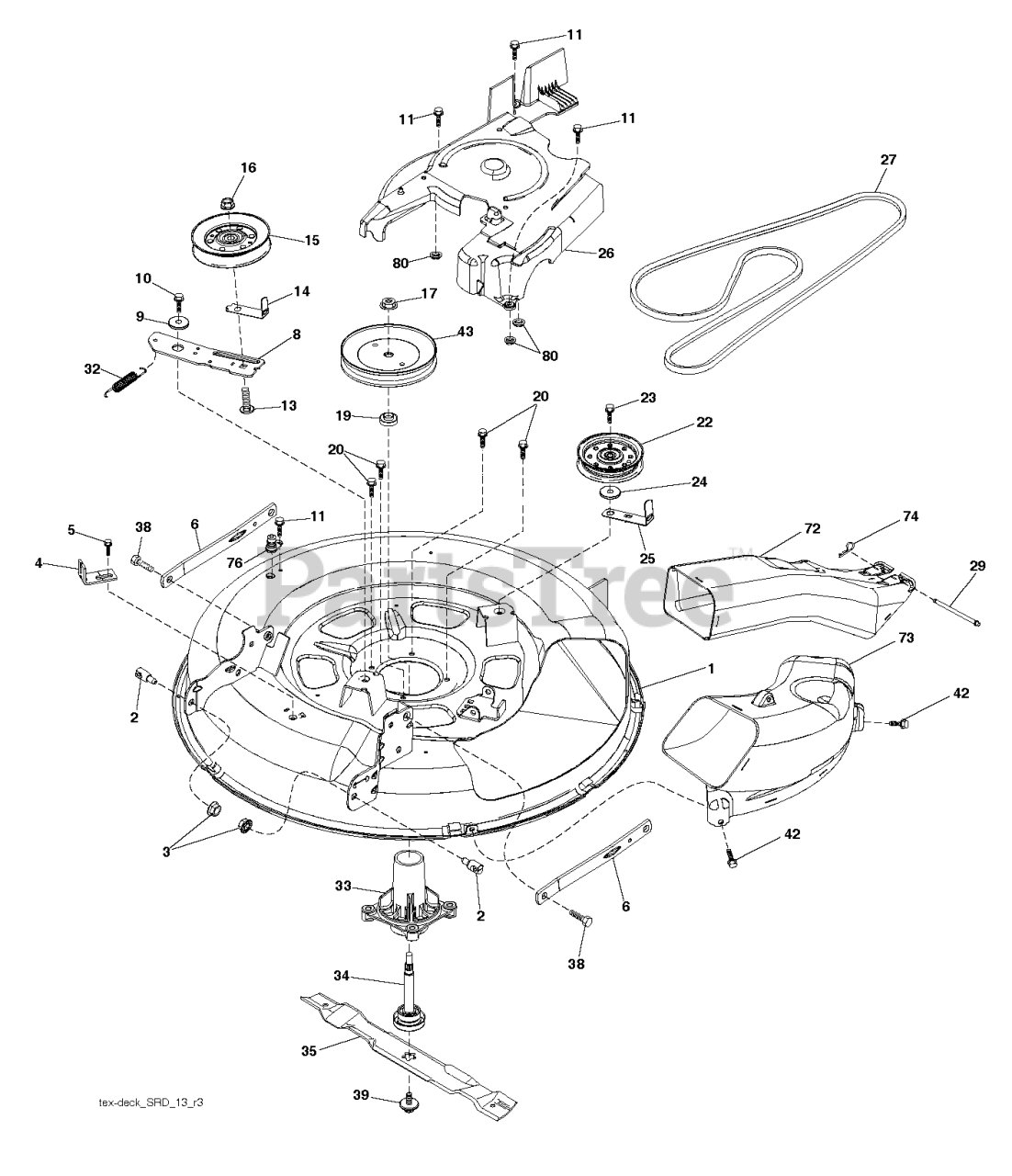 Note: MANDREL ASSEMBLY (Includes housing (key 33) shaft assembly (key 34) and bearing (key 19) only- pulley /nut /washer and blade bolt /washers not included)