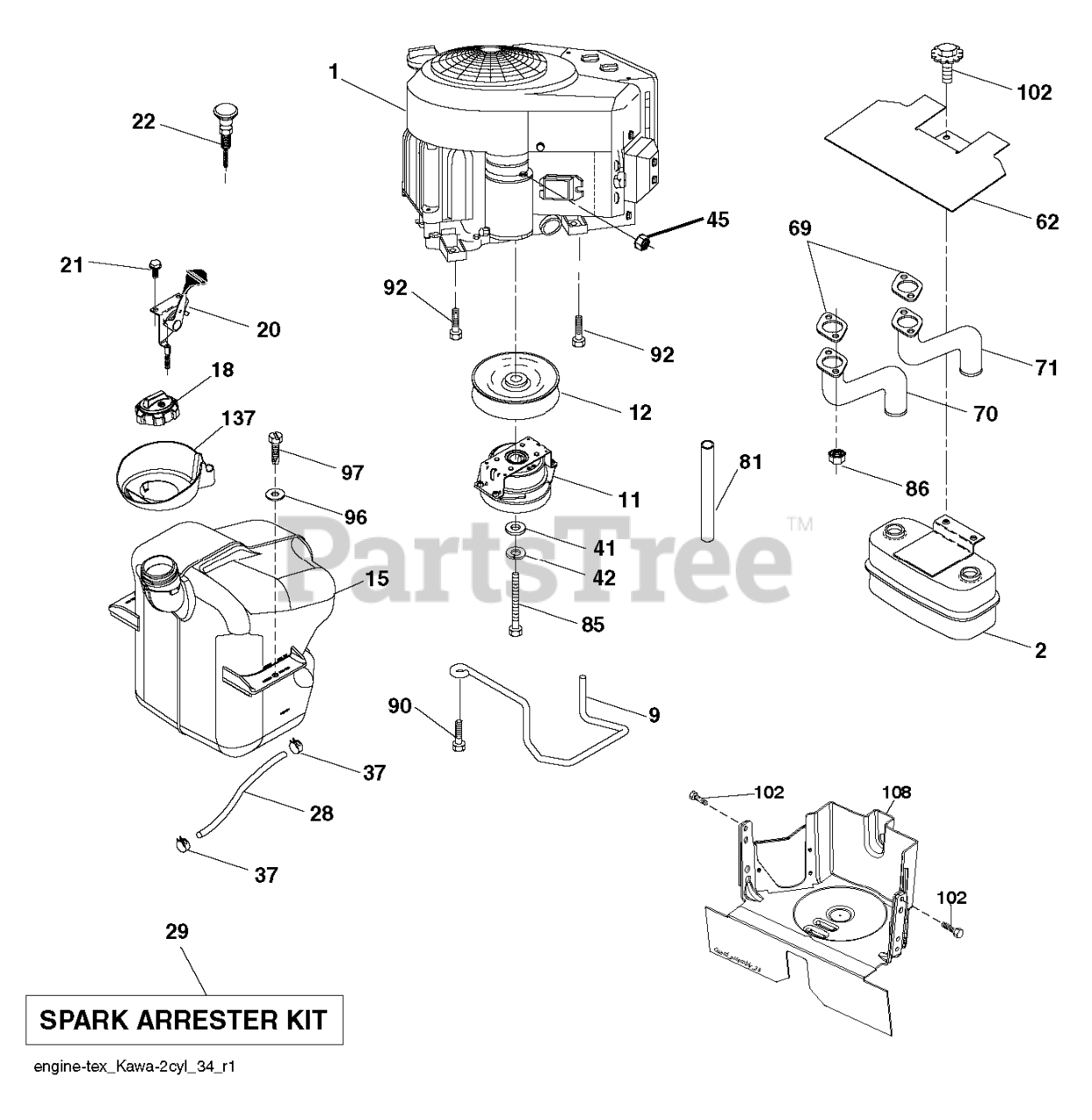 Note: Engine Kawasaki Model No FS541V-CS51 (445366)