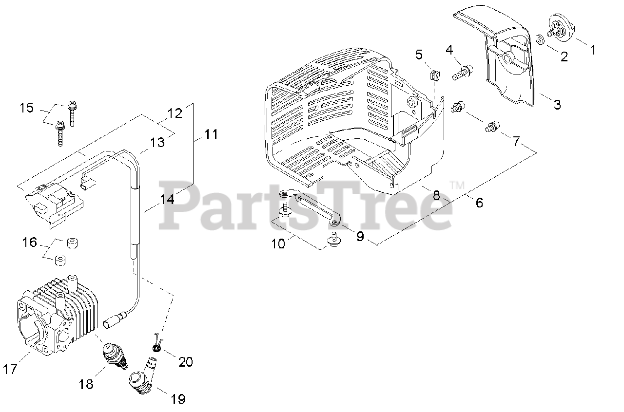 DH 231 - Shindaiwa Hedge Trimmer, Dual-Sided (SN: T09012001001 - T09012999999) Engine Cover, Ignition Parts Diagram