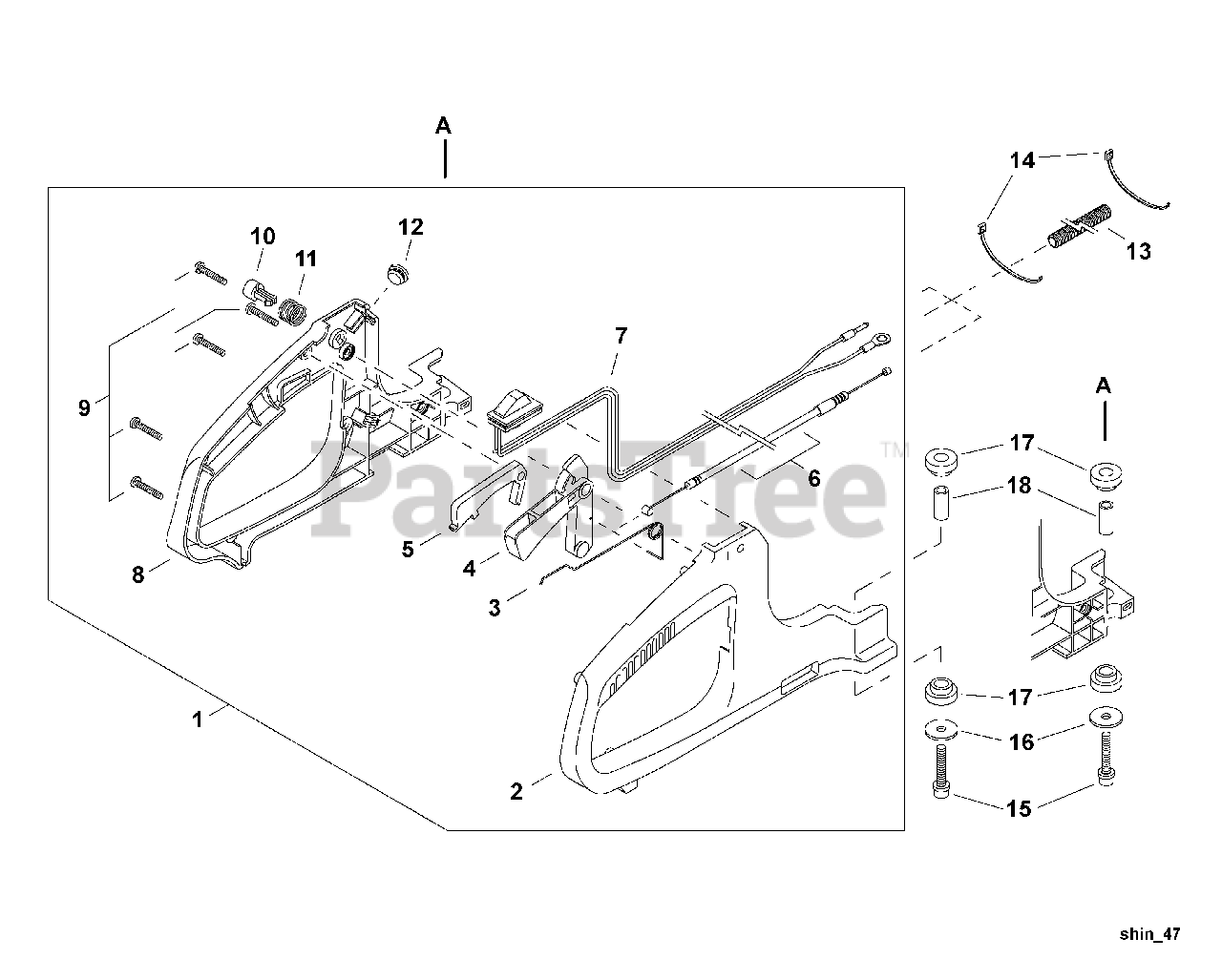 Throttle Control, Rear Handle Parts Diagram