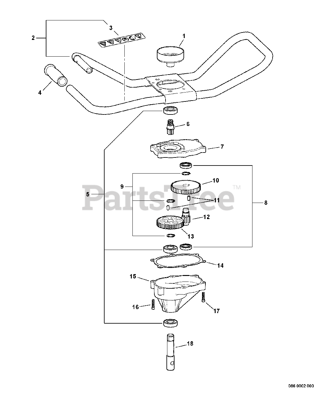 Handlebar Assembly, Gearcase S/N: 03002854 - 03999999 Parts Diagram
