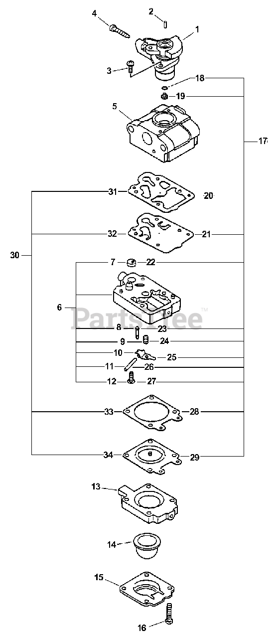 EDR-210 - Echo Reversible Engine Drill (SN: 07001001 - 07999999) Carburetor -- WYL-180A Parts Diagram