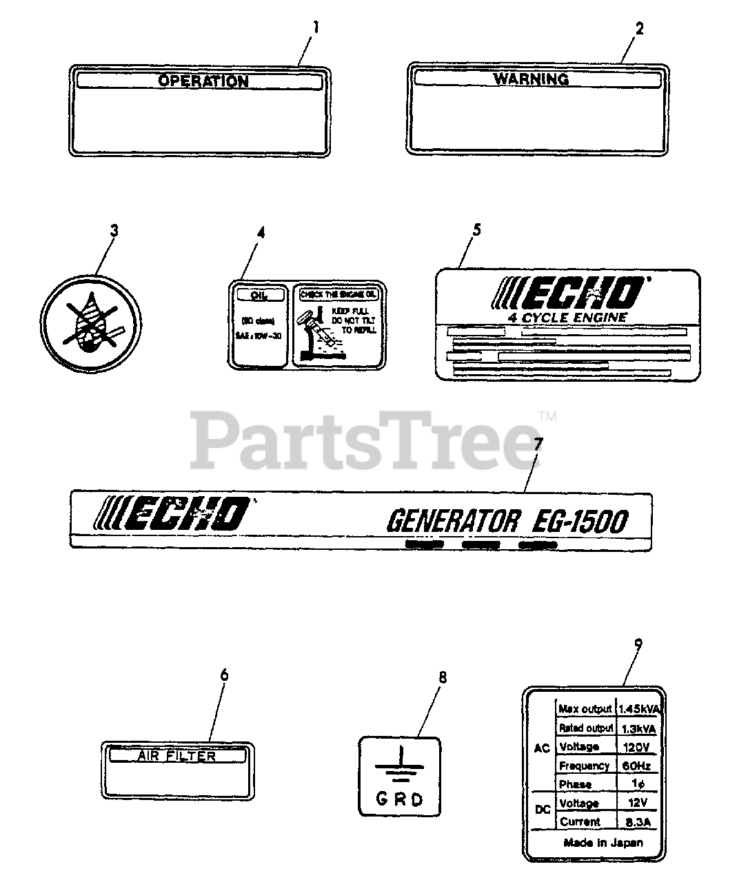 LABEL - MODEL EG1500