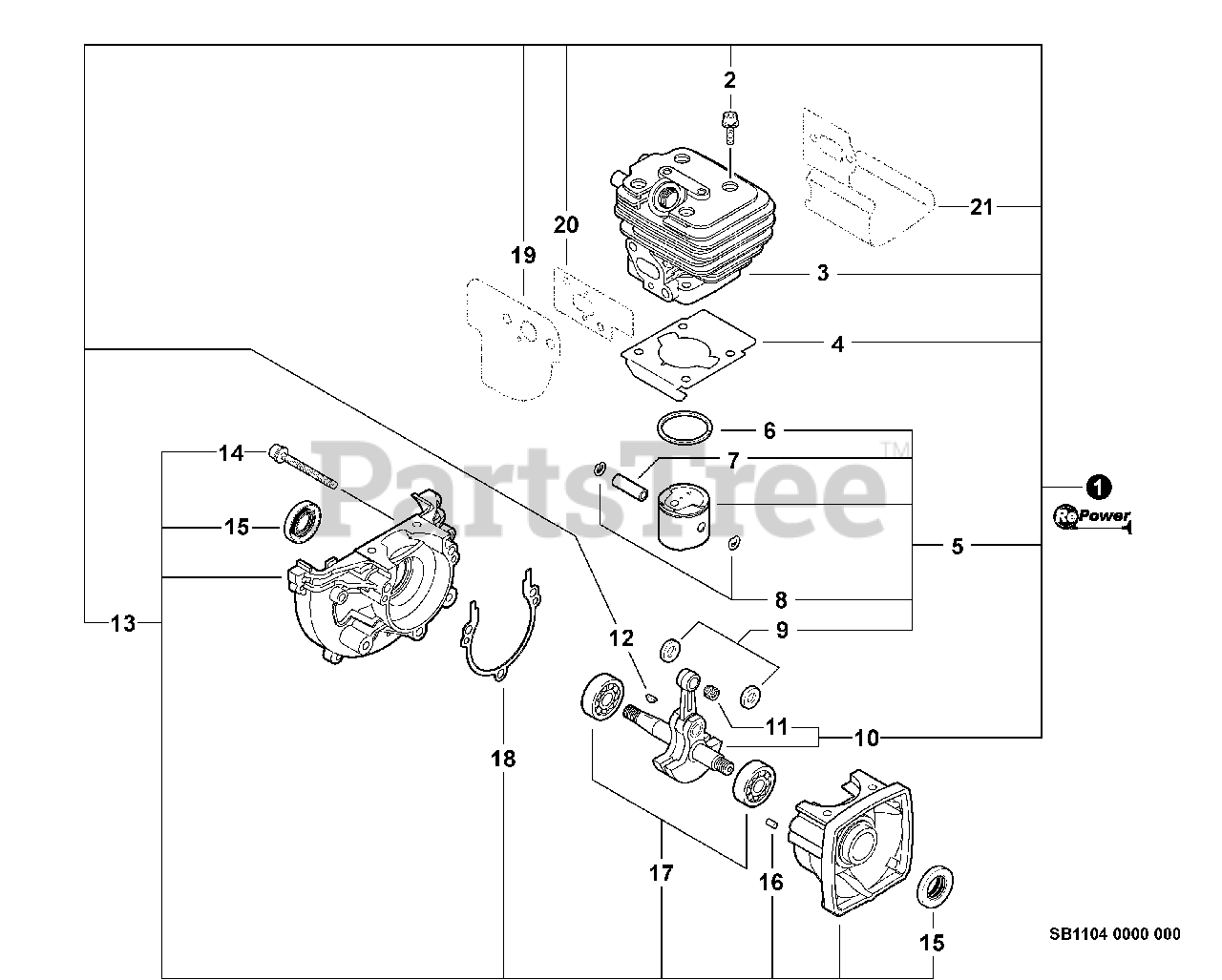 ES-250 - Echo Shred N Vac Blower (SN: P33612001001 - P33612999999) Engine, Short Block - SB1104 Parts Diagram