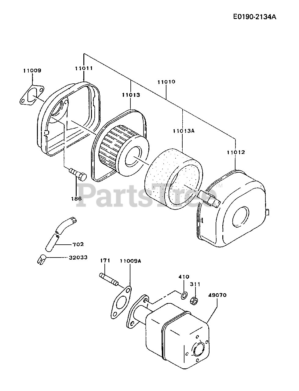 FA210D-AS23 - Kawasaki Engine AIR-FILTER/MUFFLER Parts Diagram