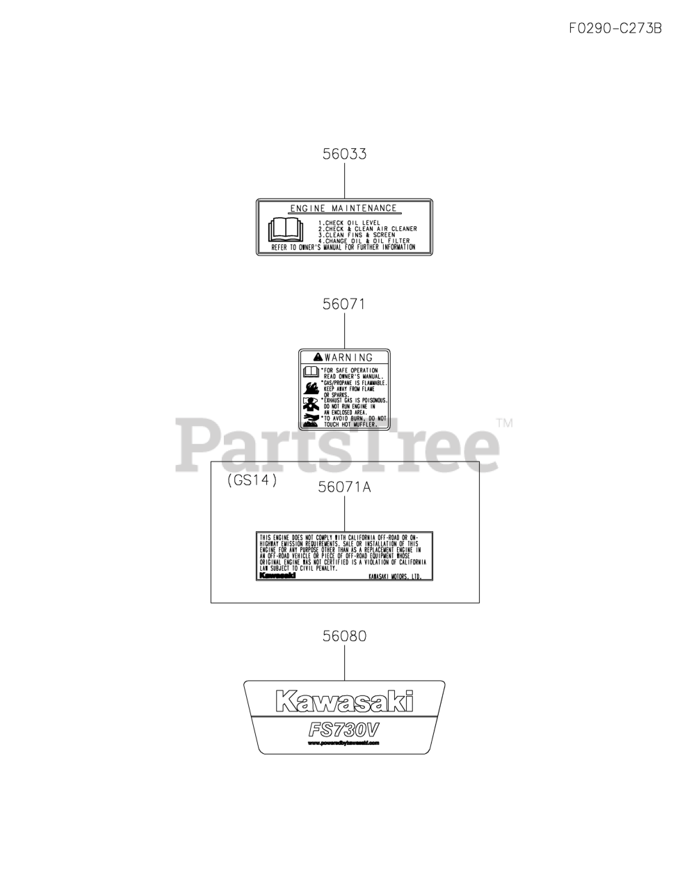 FS730V-FS14 - Kawasaki Engine LABEL Parts Diagram