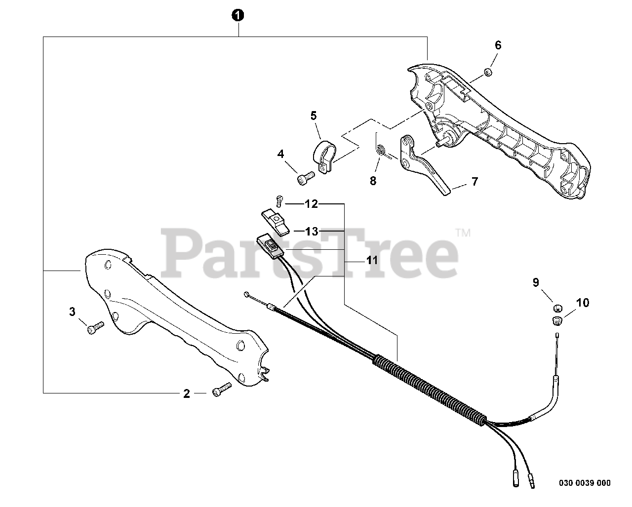 Control Handle - WITHOUT THROTTLE LOCKOUT Parts Diagram