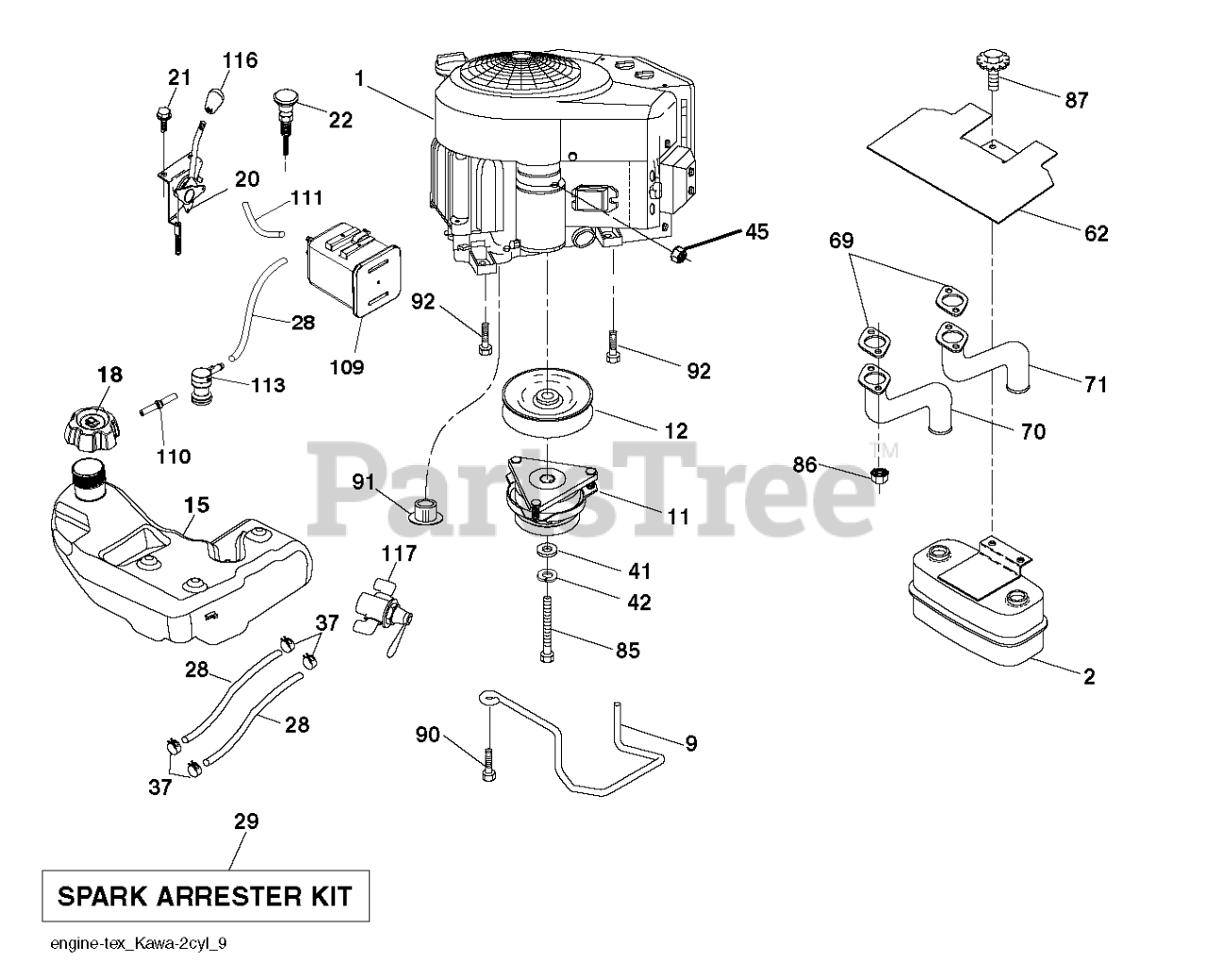 Note: ENGINE KAWA MODEL NO FR730V-DS04 (445363)