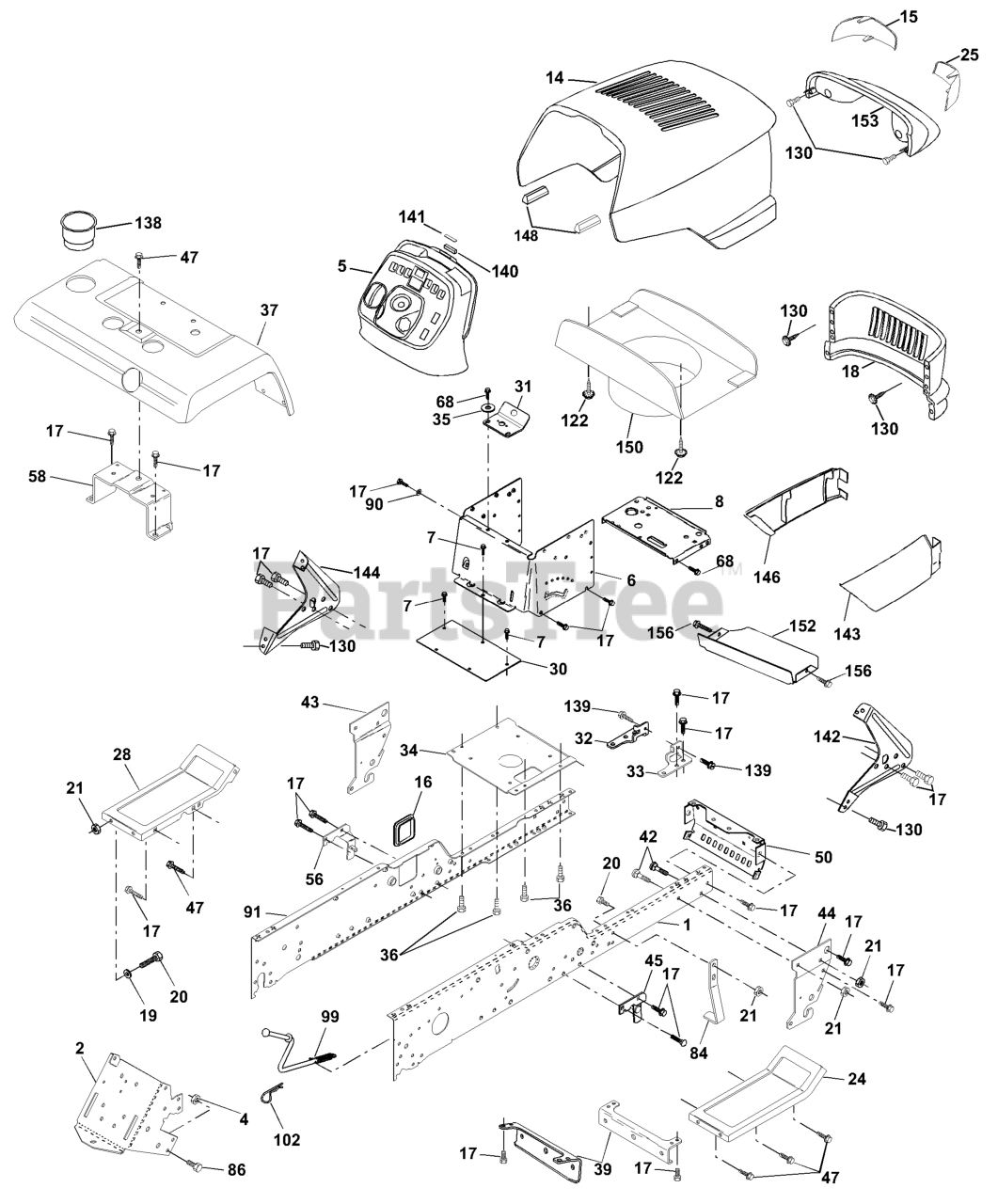 GTH 2550 XP (954567116-B) - Husqvarna 50" Garden Tractor (2001-02) Chassis And Enclosures Parts Diagram