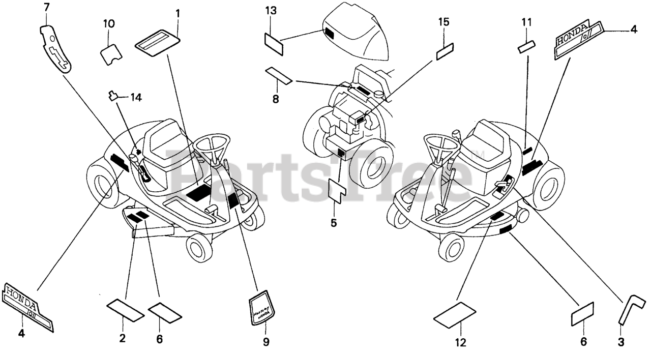 H1011 H SA (MZAW) - Honda Riding Mower, Made in USA (SN: MZAW-6000001 - MZAW-6100000) LABELS Parts Diagram