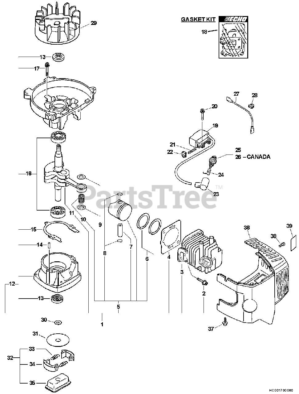 HC-150 - Echo Hedge Trimmer (SN: 05001001 - 05999999) Engine, Short Block, Ignition, Clutch, Cylinder Cover Parts Diagram