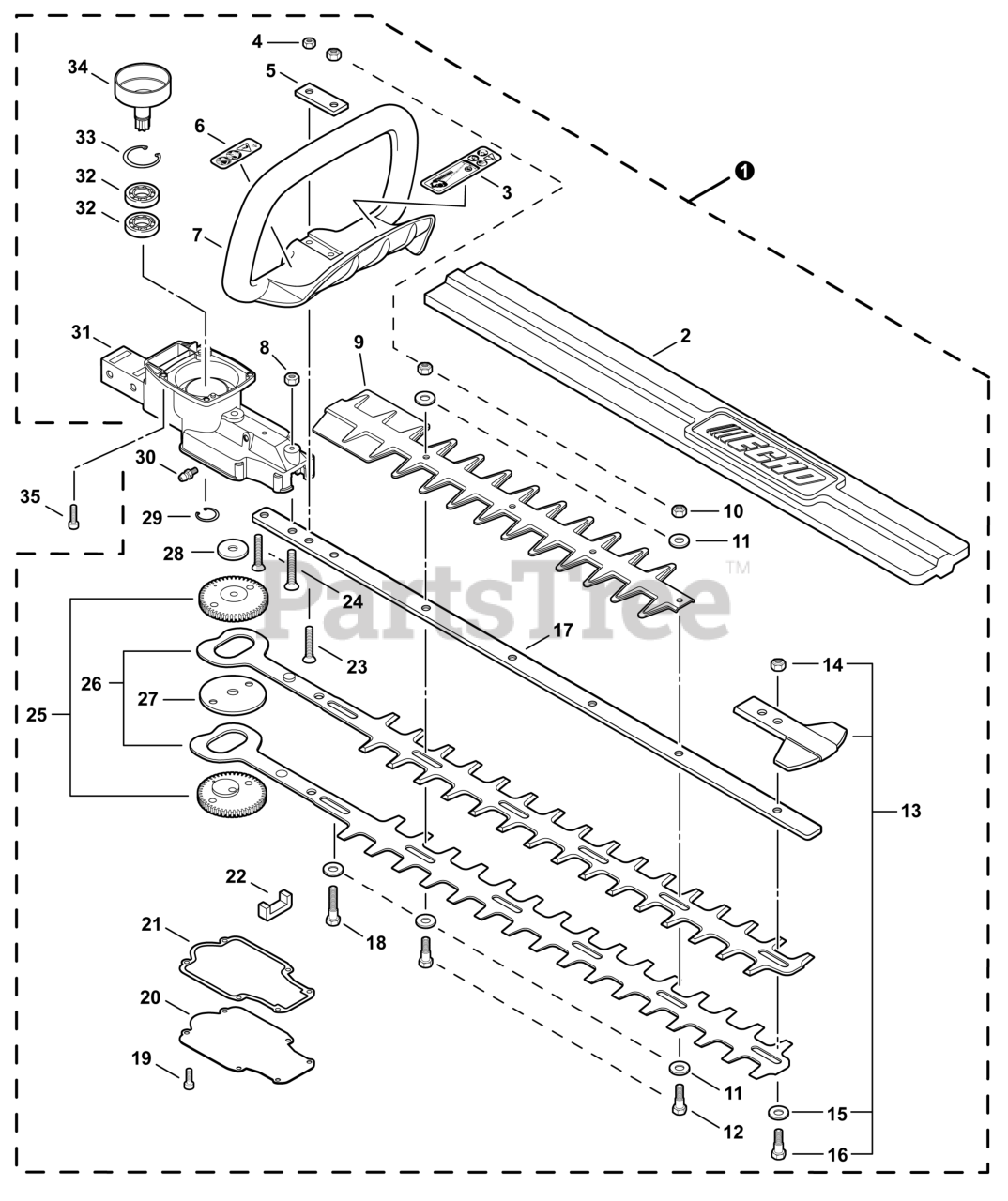 Blades, Front Handle, Gear Case Parts Diagram