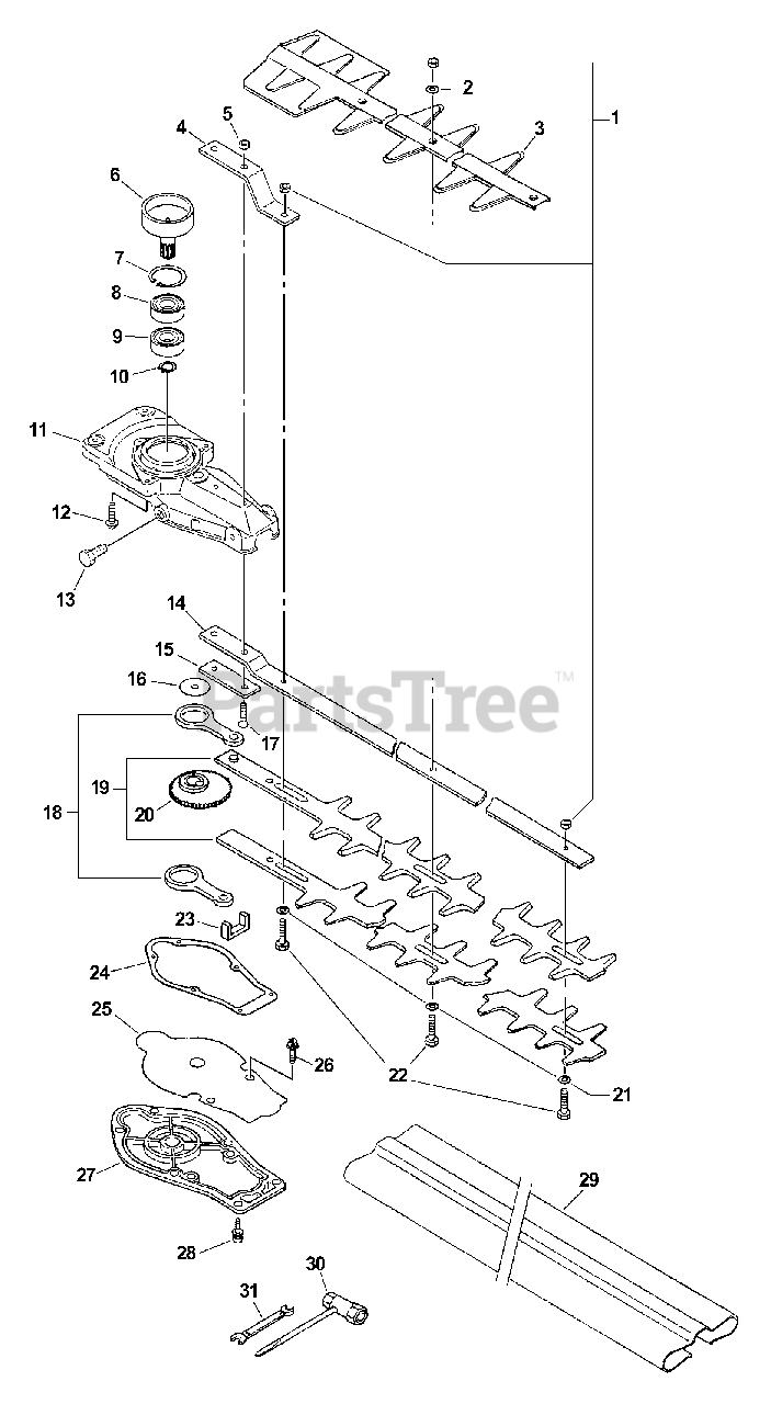 HC-161 - Echo Hedge Trimmer (SN: 02001001 - 02999999) Gearcase, Blades, Tools Parts Diagram
