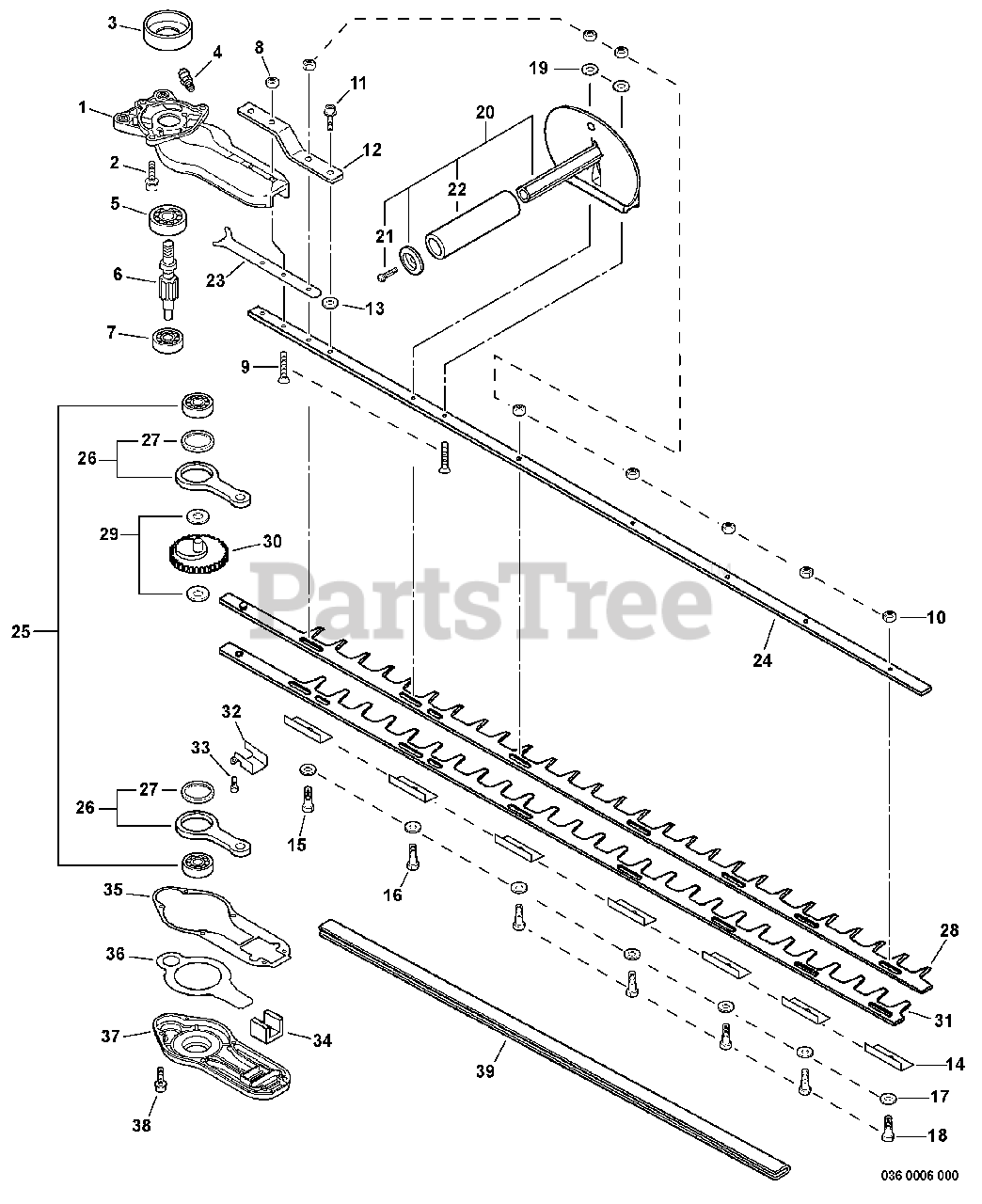 HC-231 - Echo Hedge Trimmer (SN: S78113001001 - S78113999999) Gear Case, Blades, Front Handle Parts Diagram