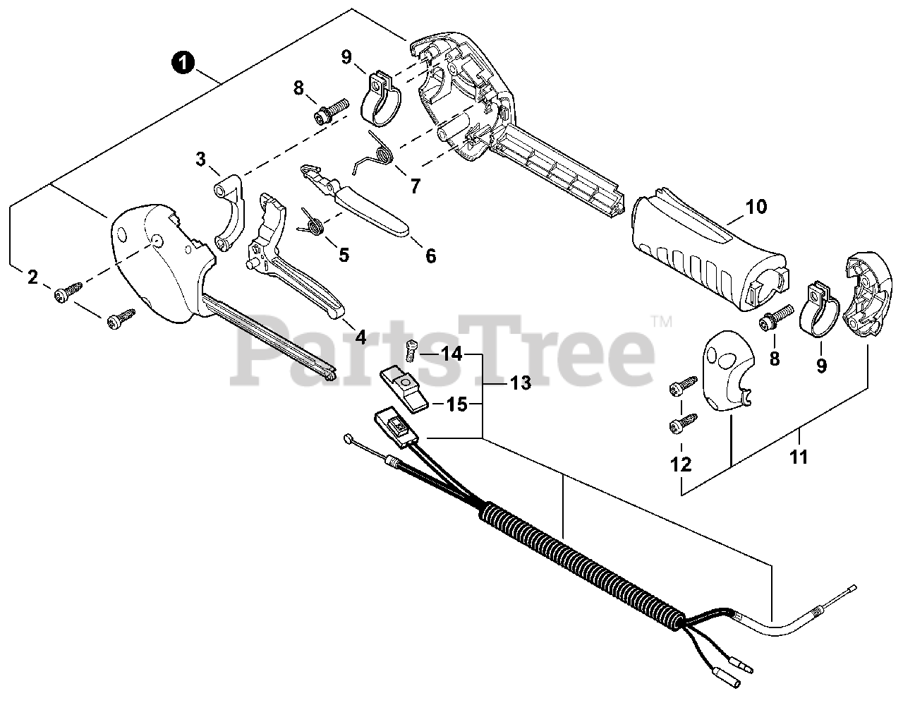 HCA-266 - Echo Articulating Hedge Trimmer (SN: T43011001001 - T43011999999) Control Handle S/N T43011001001 - T43011005733 Parts Diagram