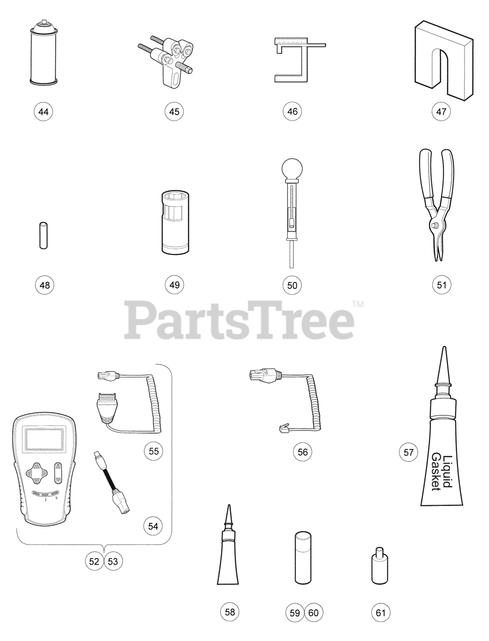 Note: (for Kawasaki Engines), (includes air filter, spark plug, oil filter, fuel filters), (not shown)
