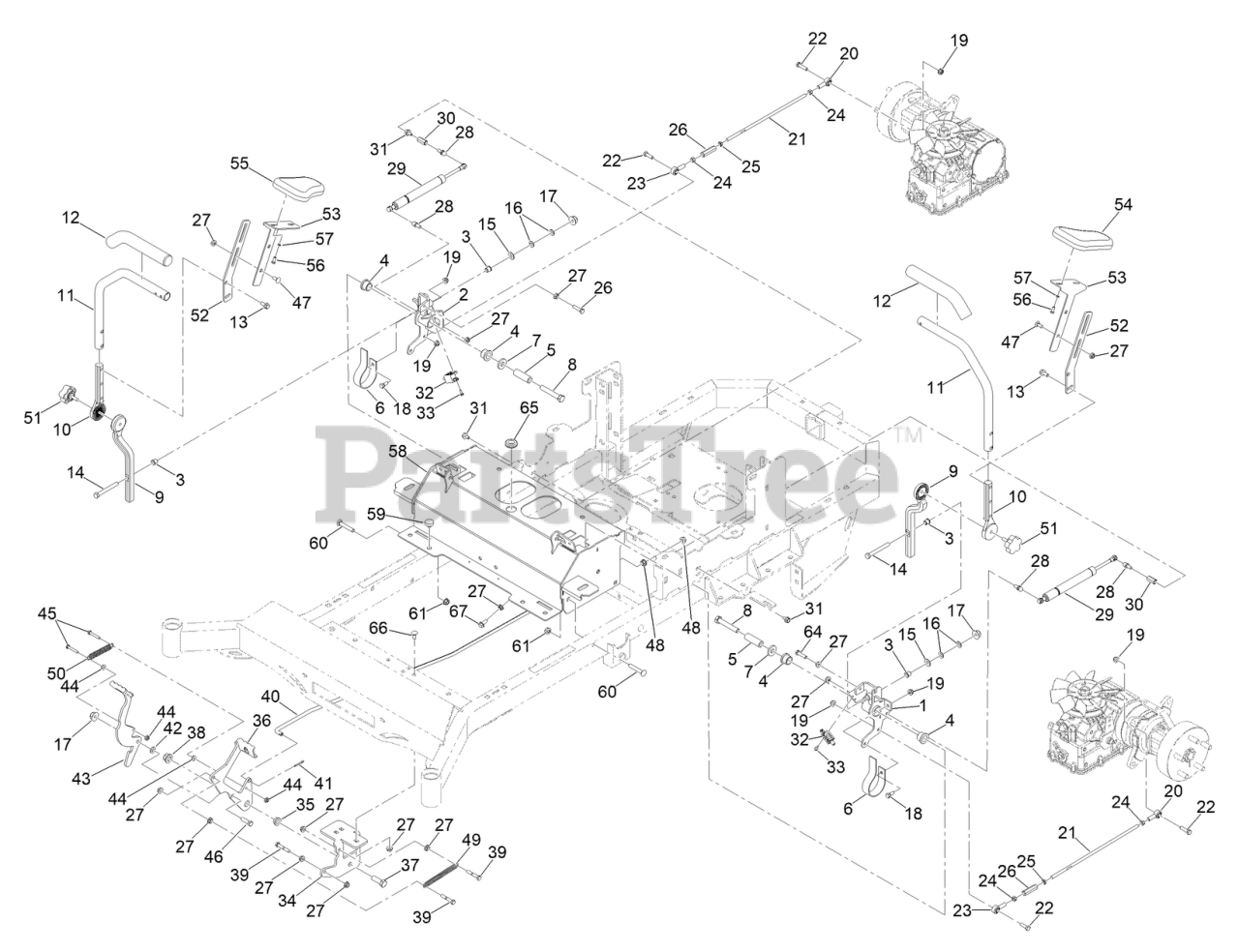 KGZ (RSKXD161994VO) - Spartan 61" Zero-Turn Mower (SN: 400000000 - 999999999) Motion Control and Parking Brake Assembly Parts Diagram