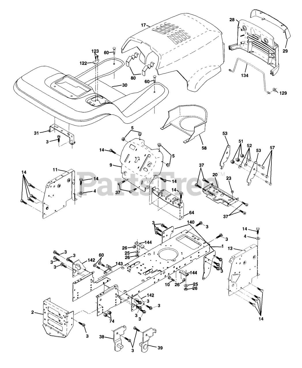 LT 130 (954140004-A) - Husqvarna Lawn Tractor (1997-12) Chassis And Enclosures Parts Diagram