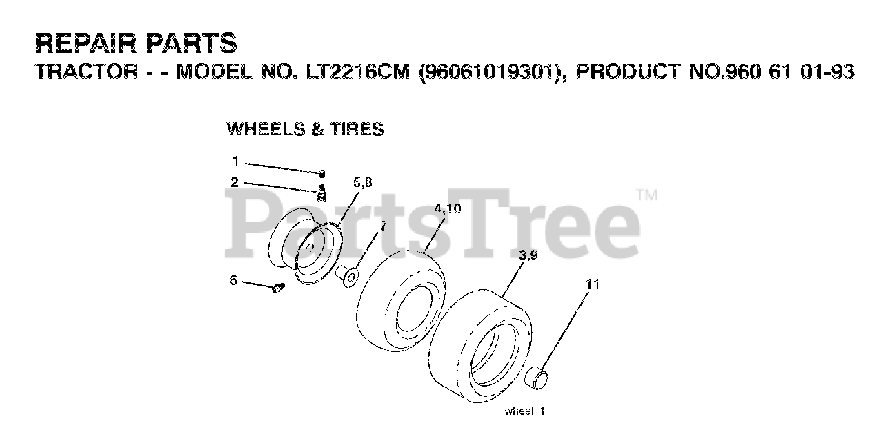 LT 2216 CM (960610193-01) - Jonsered Lawn Tractor (2007-04) WHEELS TIRES Parts Diagram