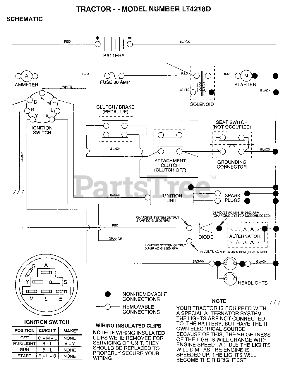 LT 4218 D - Electrolux/AYP Lawn Tractor (1996) SCHEMATIC Parts Diagram