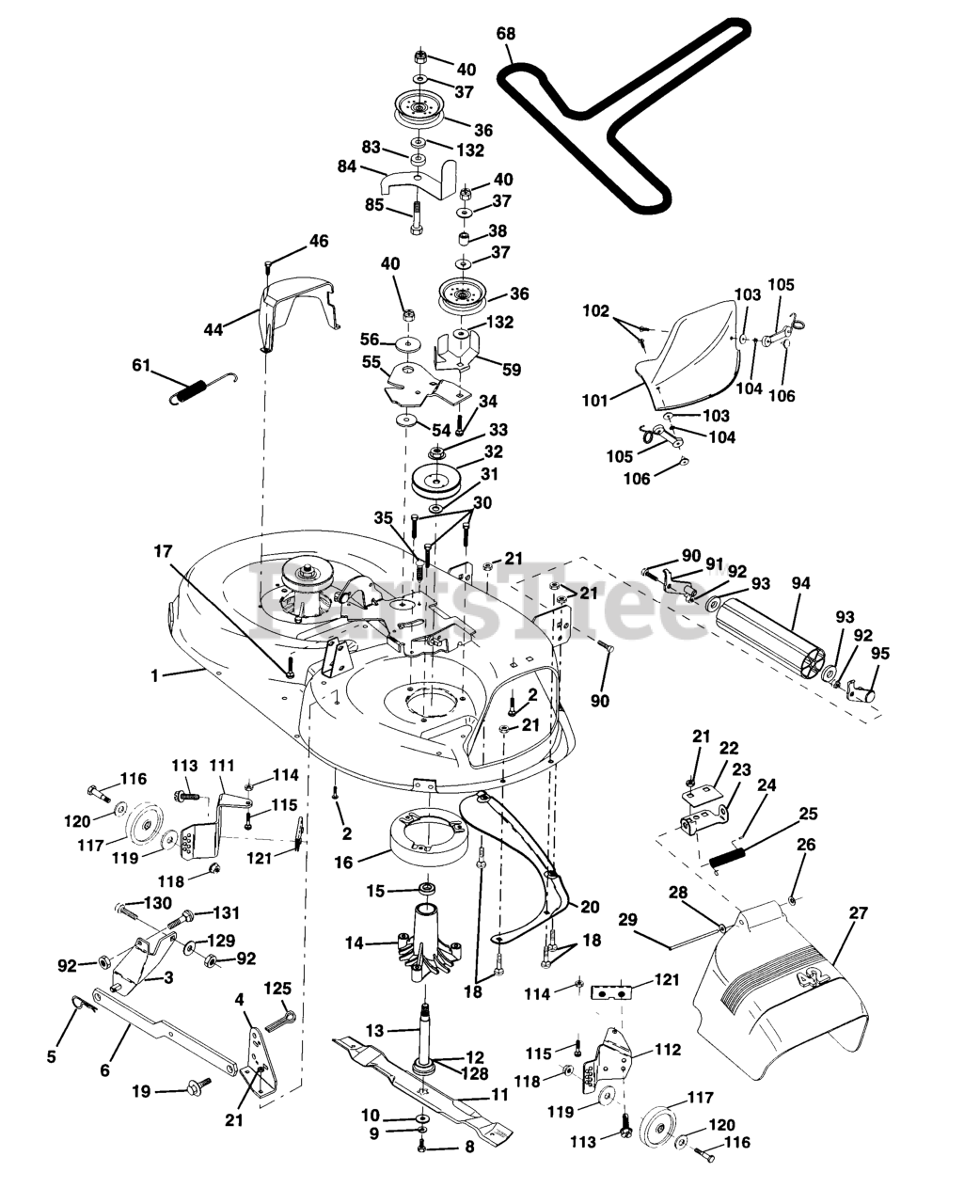 Note: (Standard Deck - Order Nose Roller, Gauge Wheel and Mulcher Plate components separately Key Nos. 90-95, 101-106 and 111-121)