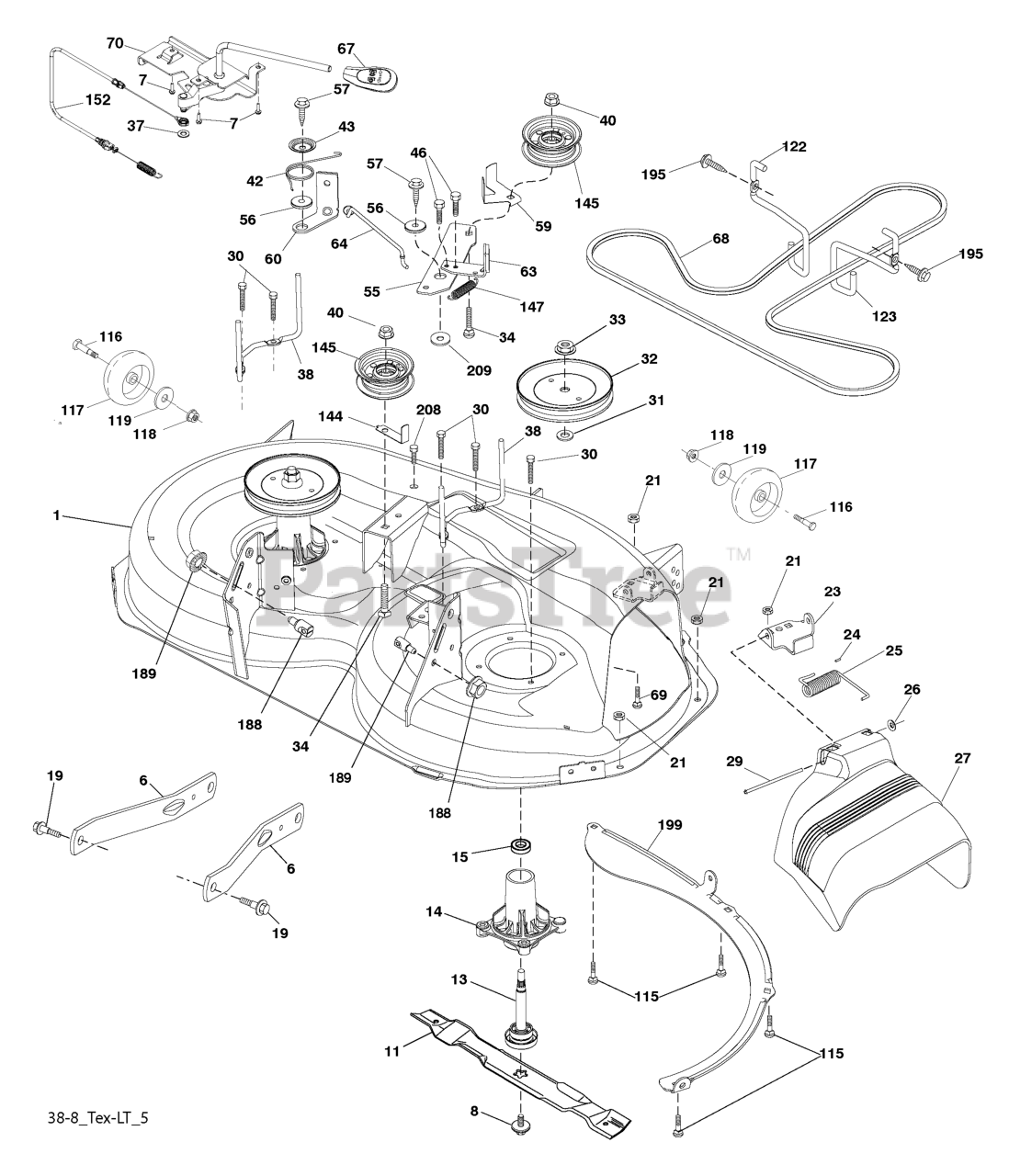Note: (Includes housing, shaft assembly, and bearing only - pulley/nut/washer and blade bolt/washers not included)