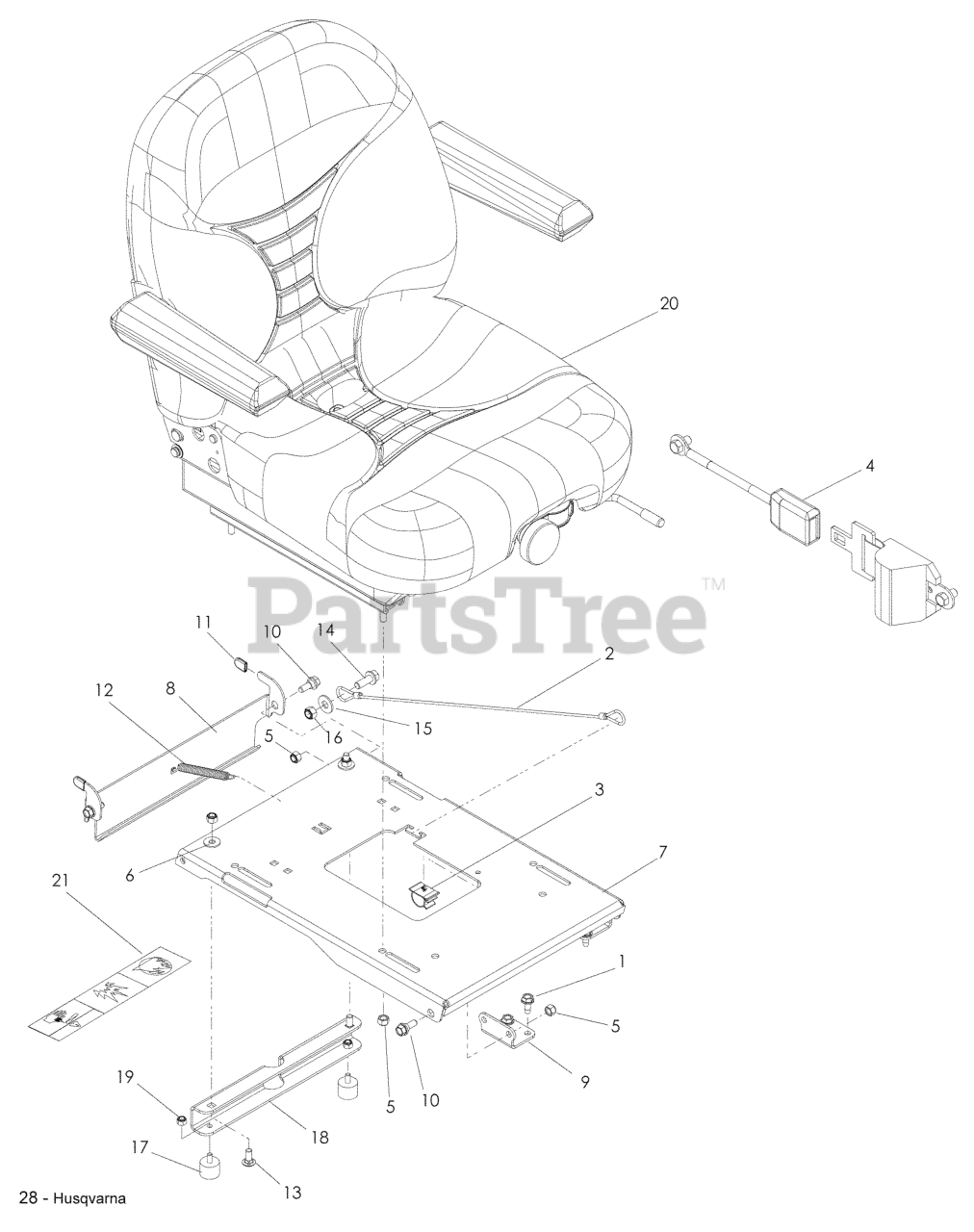 LZ 5227 (968999674) - Husqvarna 52" Zero-Turn Mower (2008-12) Seat Parts Diagram