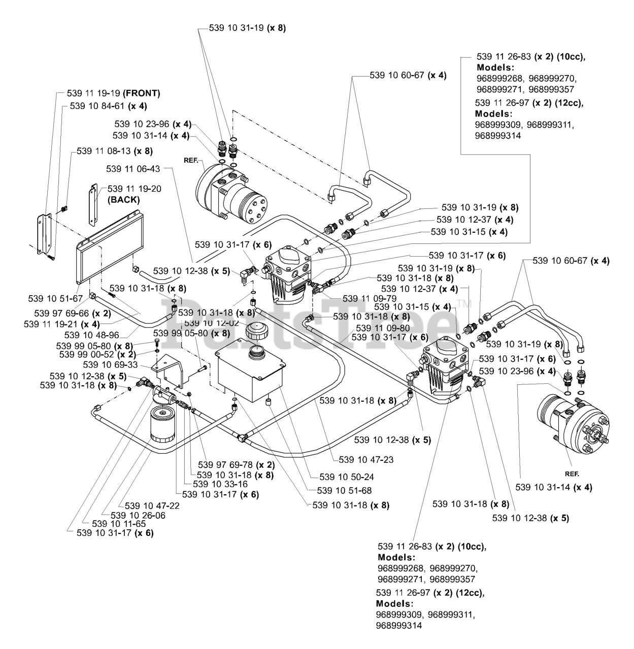 LZ 6127 TKOA (968999271) - Husqvarna 61" Zero-Turn Mower (2006-02) Hydraulic System Assembly Parts Diagram