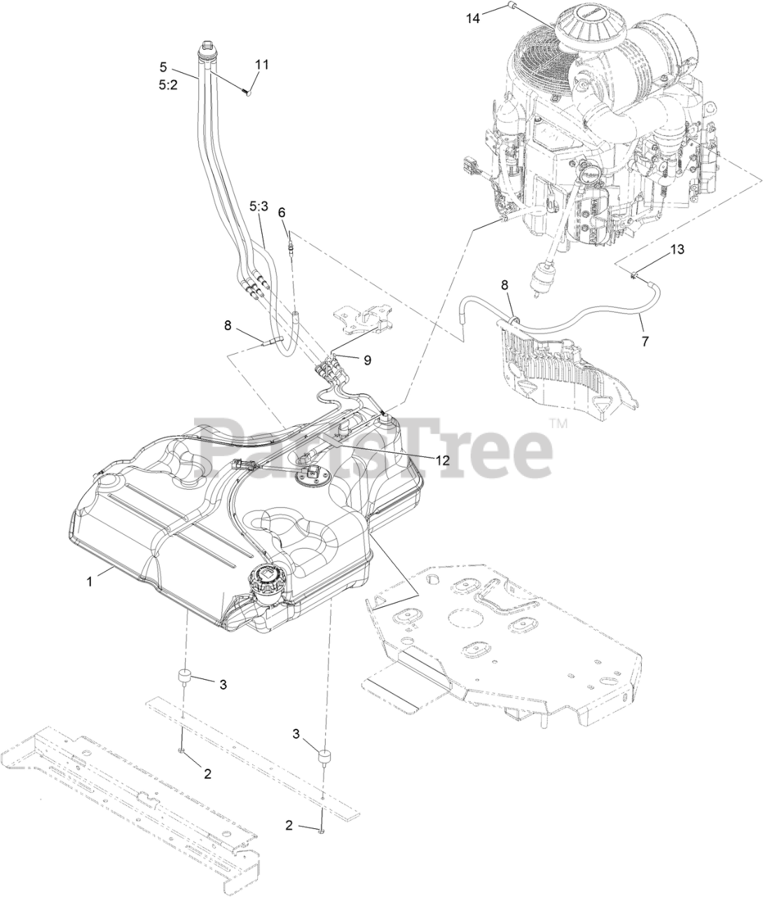 LZE801GKA724A1 - Exmark 72" Lazer Z E-Series Zero-Turn Mower, Kawasaki FX (SN: 413950474 - 416150474) (Rev B) (2023) Fuel Assembly Parts Diagram