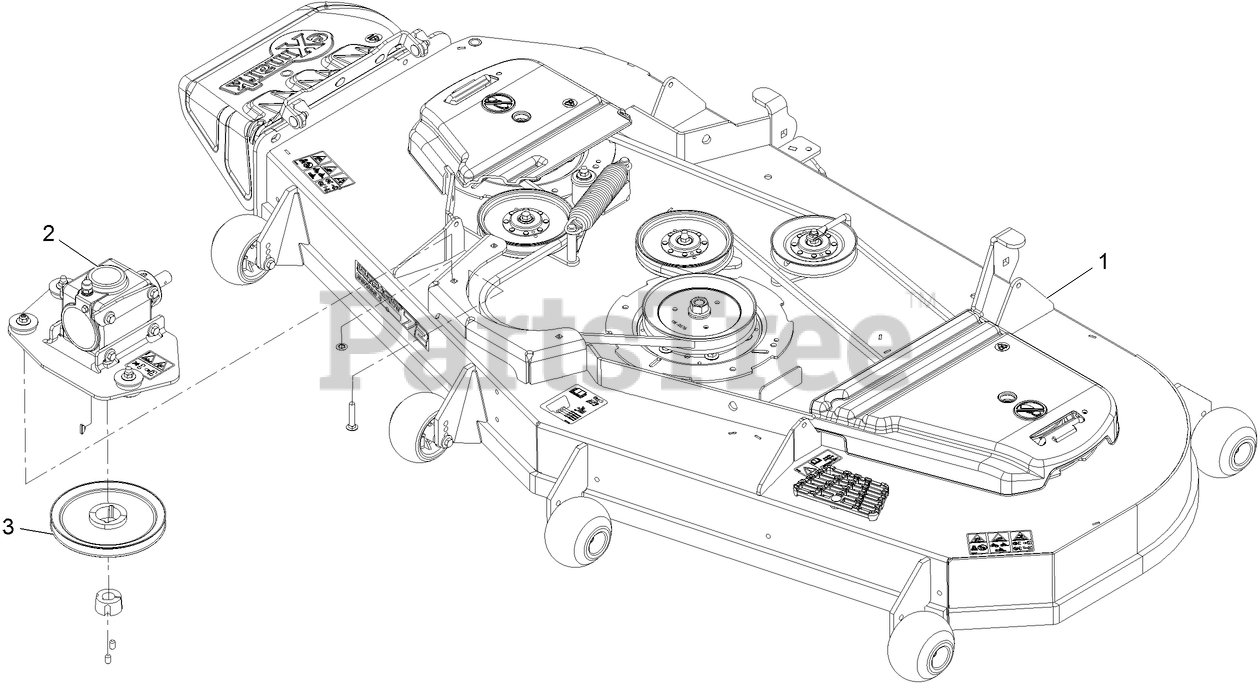 LZS80TDYM724W0 - Exmark 72" Lazer Z Diesel Zero-Turn Mower, Yanmar 3TNV80FT (SN: 413950474 - 416150474) (Rev B) (2023) Deck Assembly W/Gearbox (cont.) Parts Diagram