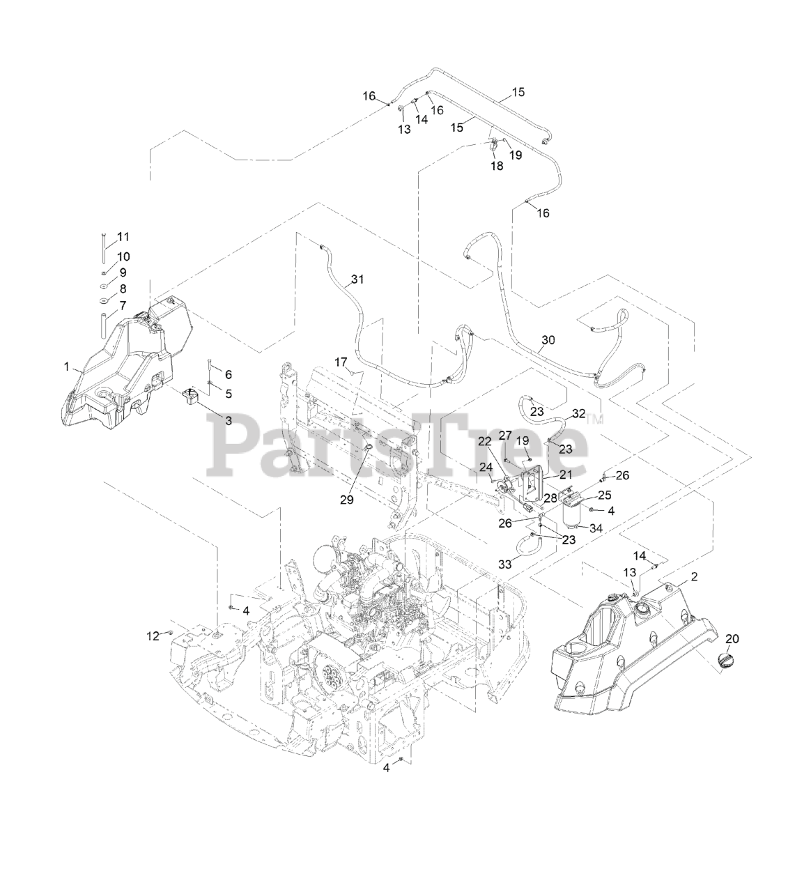 LZS80TDYM72RW0 - Exmark 72" Lazer Z Diesel Zero-Turn Mower, Yanmar 3TNV80FT (SN: 408644346 - 411294211) (Rev B) (2021) Fuel Assembly Parts Diagram