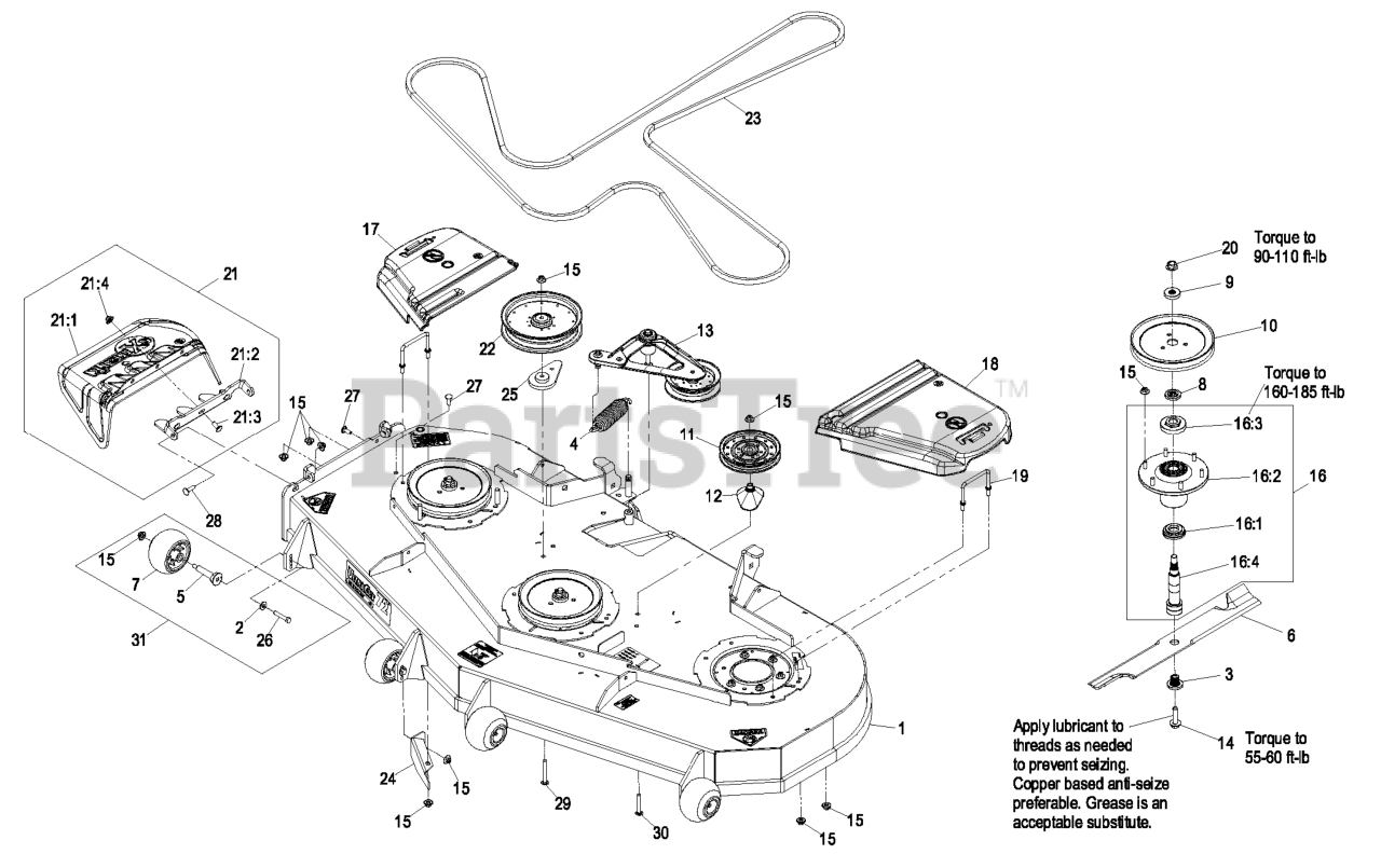 Note: Apply Mobil HTS grease (P/N 103-5217 1.5 oz packet) (or a food-grade anti-seize) between the spindles and bearings. DO NOT use a copper or nickel based anti-seize
