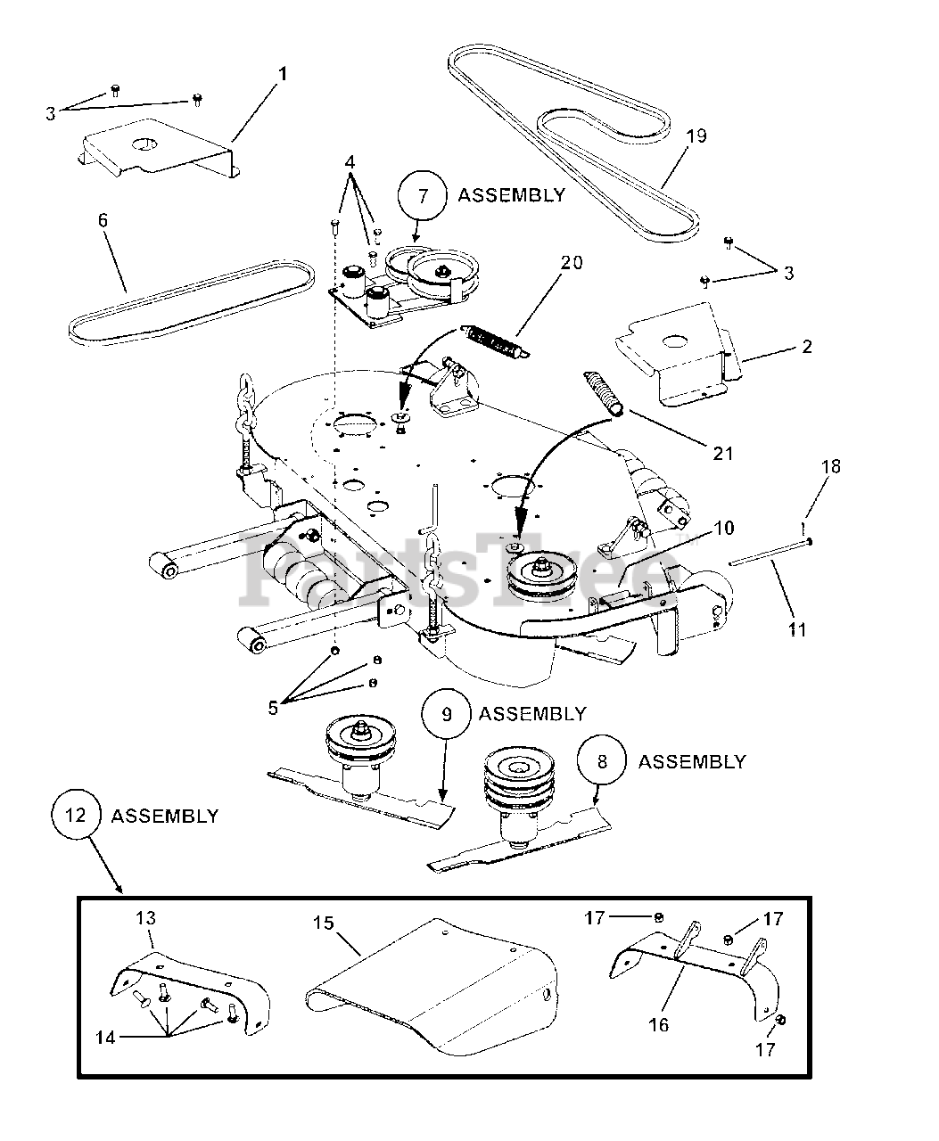 Note: (see breakdown on DECK SPINDLE ASSEMBLIES page)