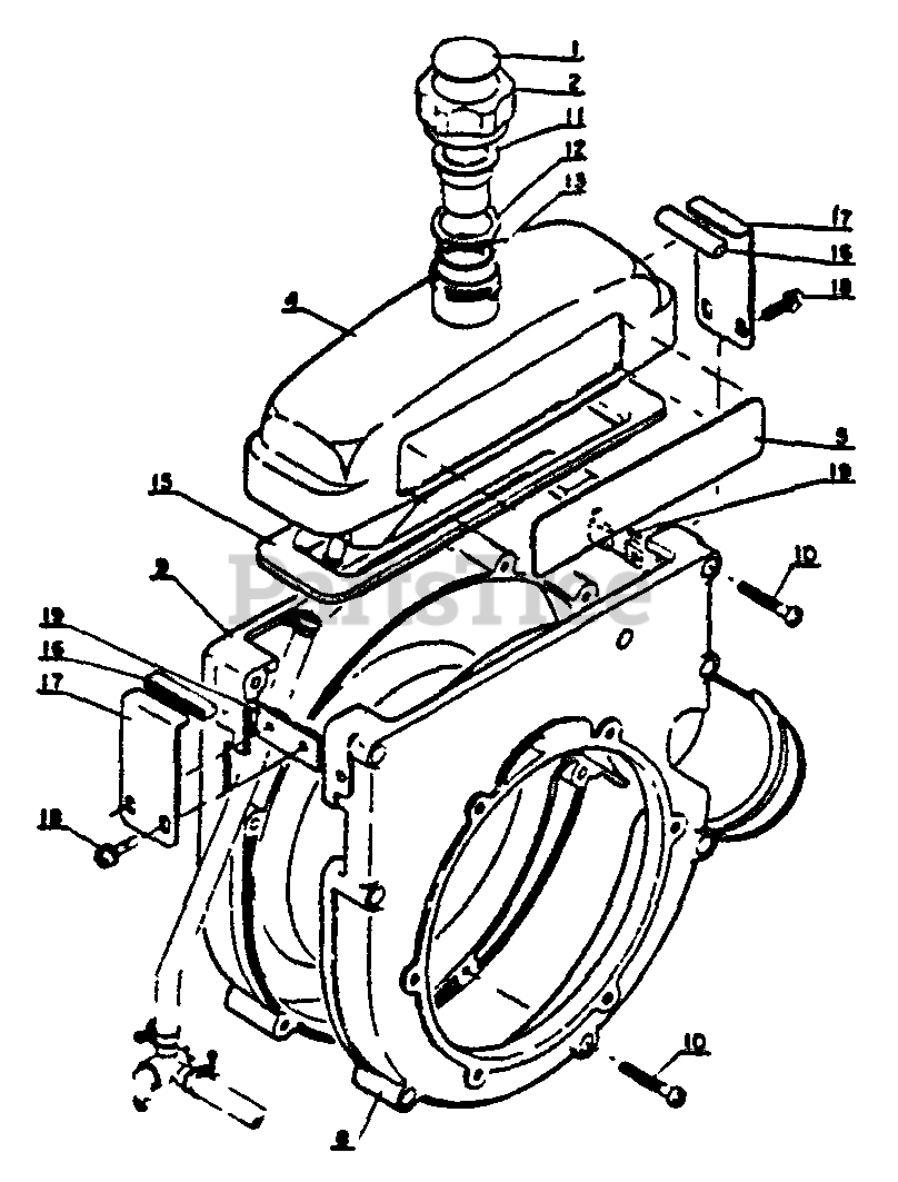 Handheld blower PB-202: features a compact 28x39x45 in (11.0x15.4x17.7 in) chassis, weighing 5.4 kg (11.9 lb). It uses an air-cooled, 2-cycle single-cylinder engine, 21.2 cc displacement, with a top speed of 7,500 rpm (idle 2,000-2,500 rpm).