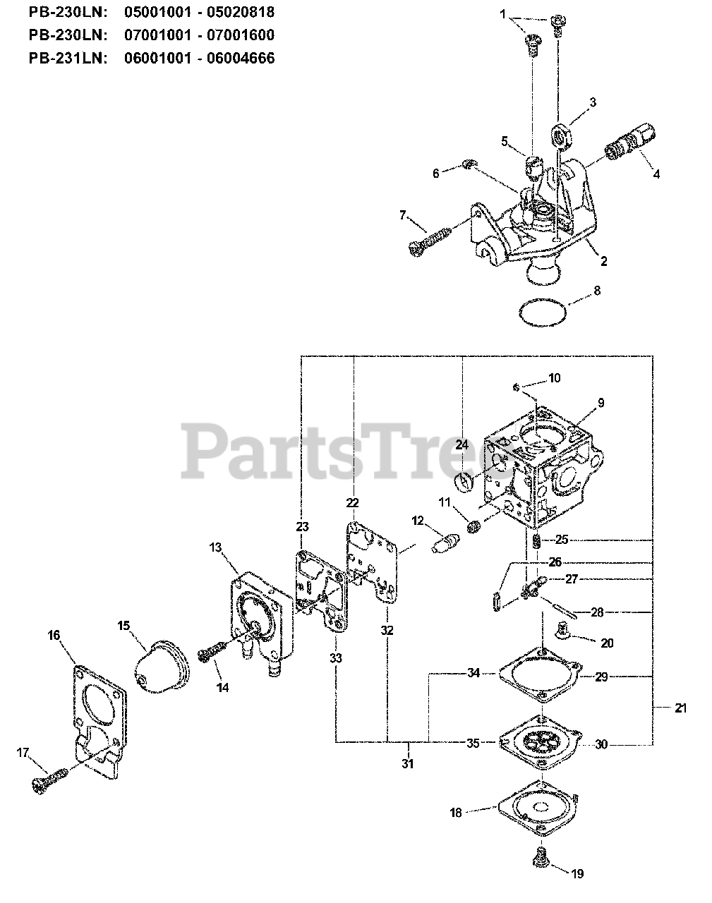 Note: SUPERSEDES:A021000351 CARBURETOR -- RB-K65, A021000350 CARBURETOR -- RB-K65