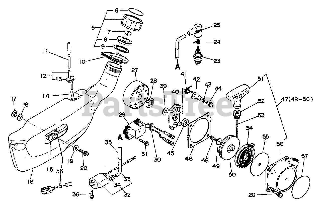 Backpack blower with 2-cycle air-cooled single-cylinder engine (30.8 cc) featuring a Walbro diaphragm carburetor and CDI ignition (NGK BPM-7A/Champion CJ-7Y). Dimensions 32x41x42 in.