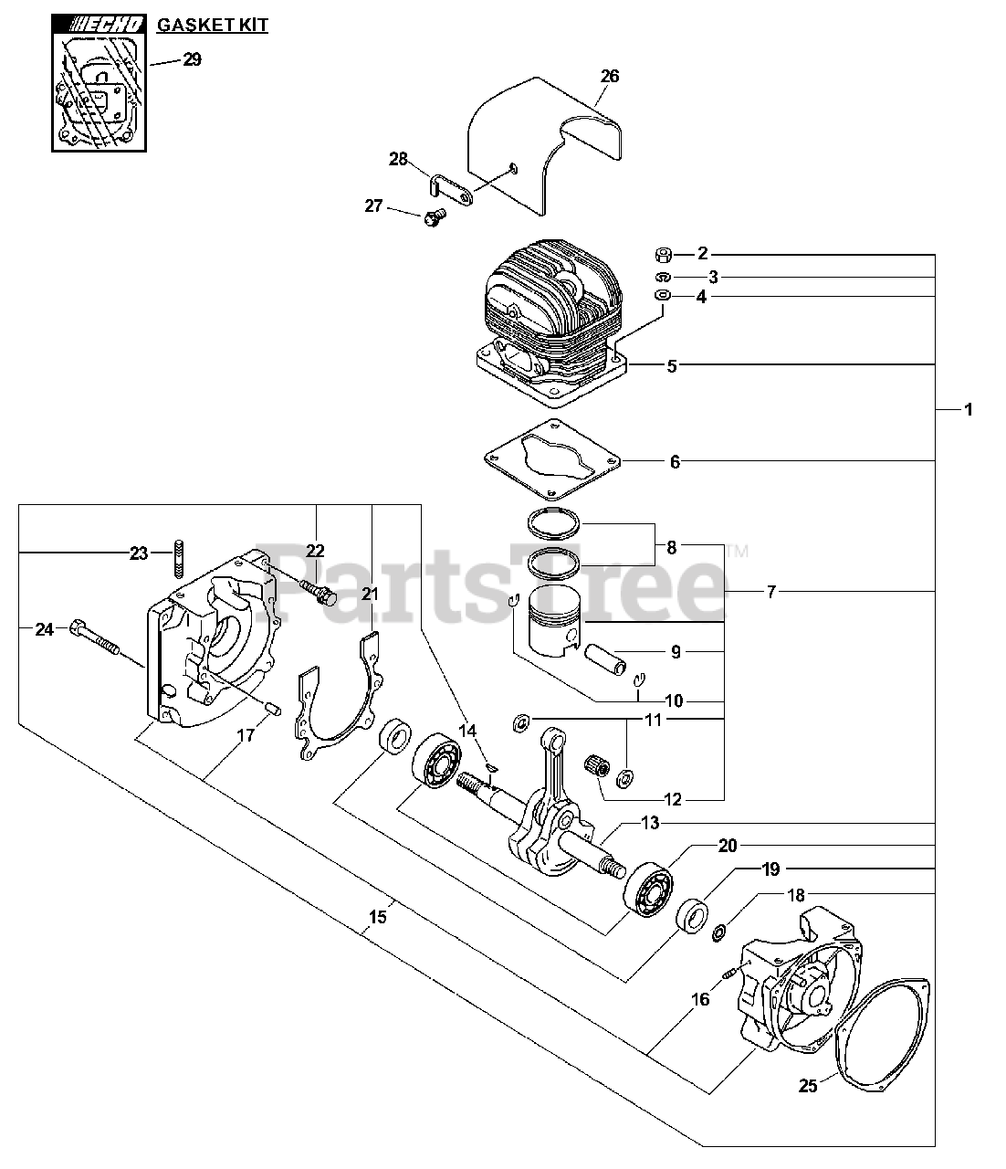 PB-411 - Echo Backpack Blower (SN: 02001001 - 02999999) Engine, Short Block, Cylinder Cover Parts Diagram