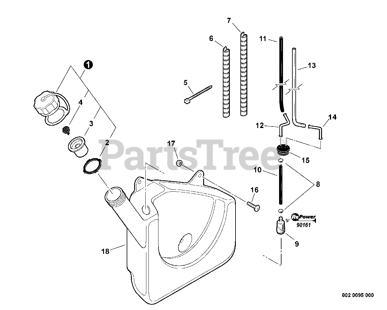 Backpack Blower - compact 320 x 460 x 440 mm, 11.9 kg dry weight, powered by a 44 cc, 2-stroke, air-cooled single-cylinder engine (40 mm bore, 35 mm stroke).