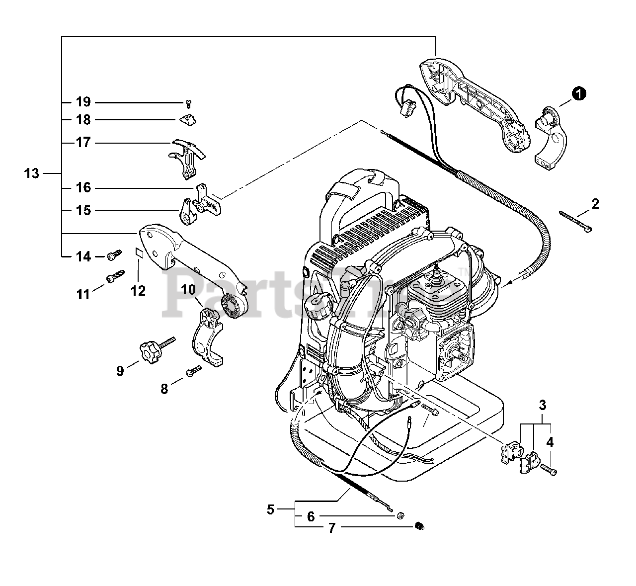 PB-500 T - Echo Backpack Blower (SN: P31212001001 - P31212999999) Tube Mount Throttle Control Parts Diagram