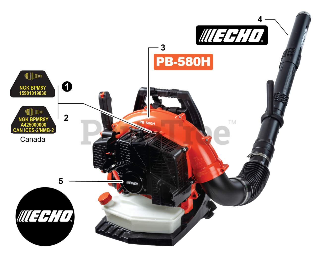 PB-580 H - Echo Backpack Blower (SN: P64113001001 - P64113999999) Labels Parts Diagram