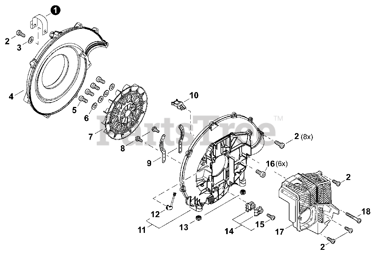 Backpack blower (PB-580T). Compact 379 x 478 x 459 mm, 9.3 kg dry. 58.2 cc 2-stroke, air-cooled engine with diaphragm carburetor. 62 fl oz fuel tank. Delivers 517 CFM at the nozzle and a peak air speed of 216 mph.
