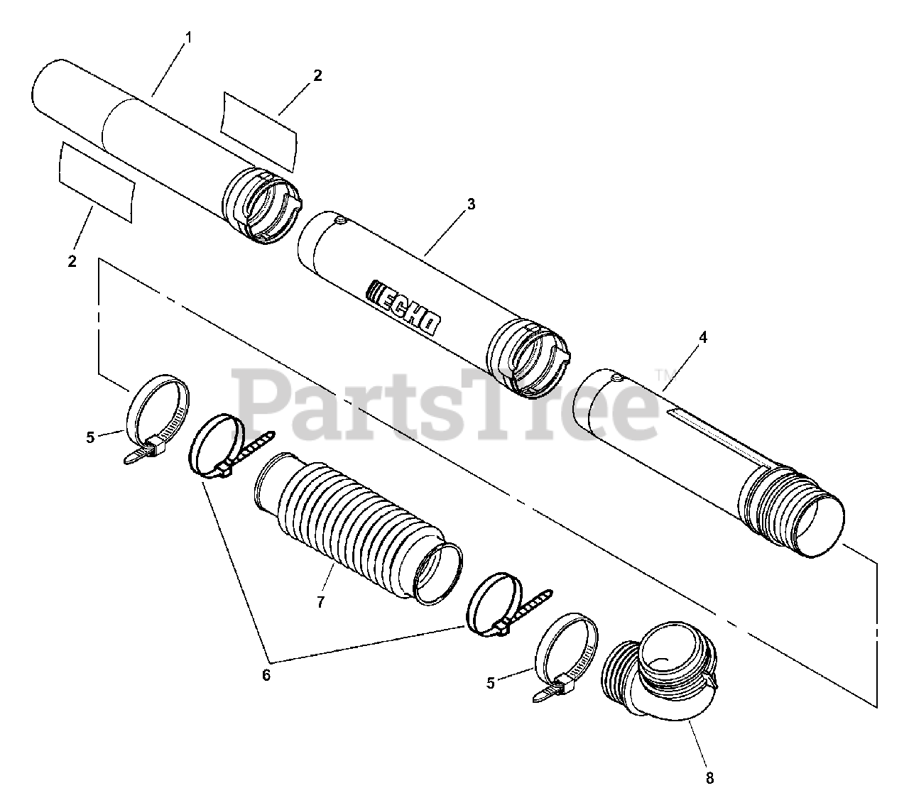 PB-603 - Echo Backpack Blower (SN: 03001001 - 03999999) Blower Tubes Parts Diagram