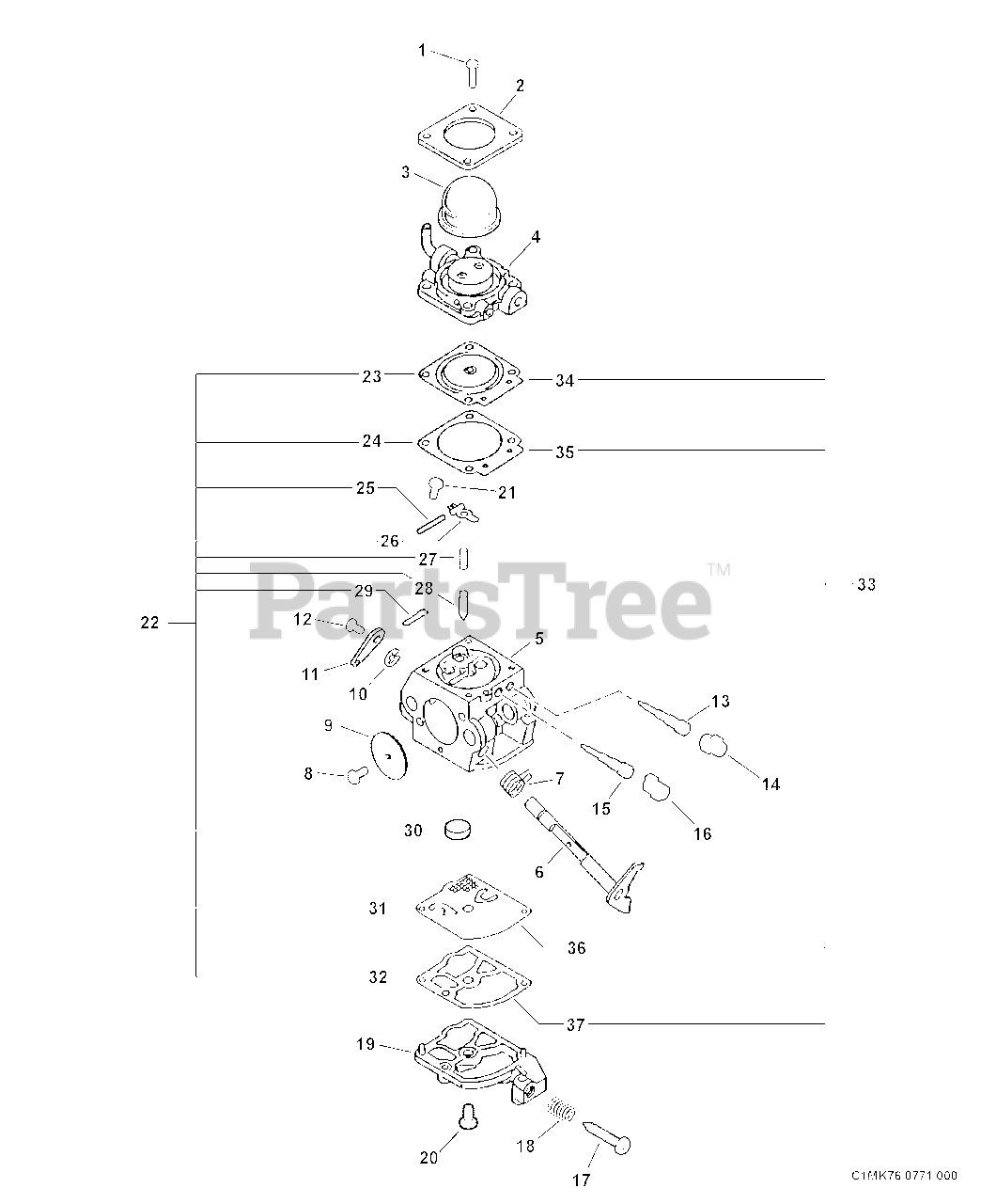 Carburetor -- C1M-K76 Parts Diagram
